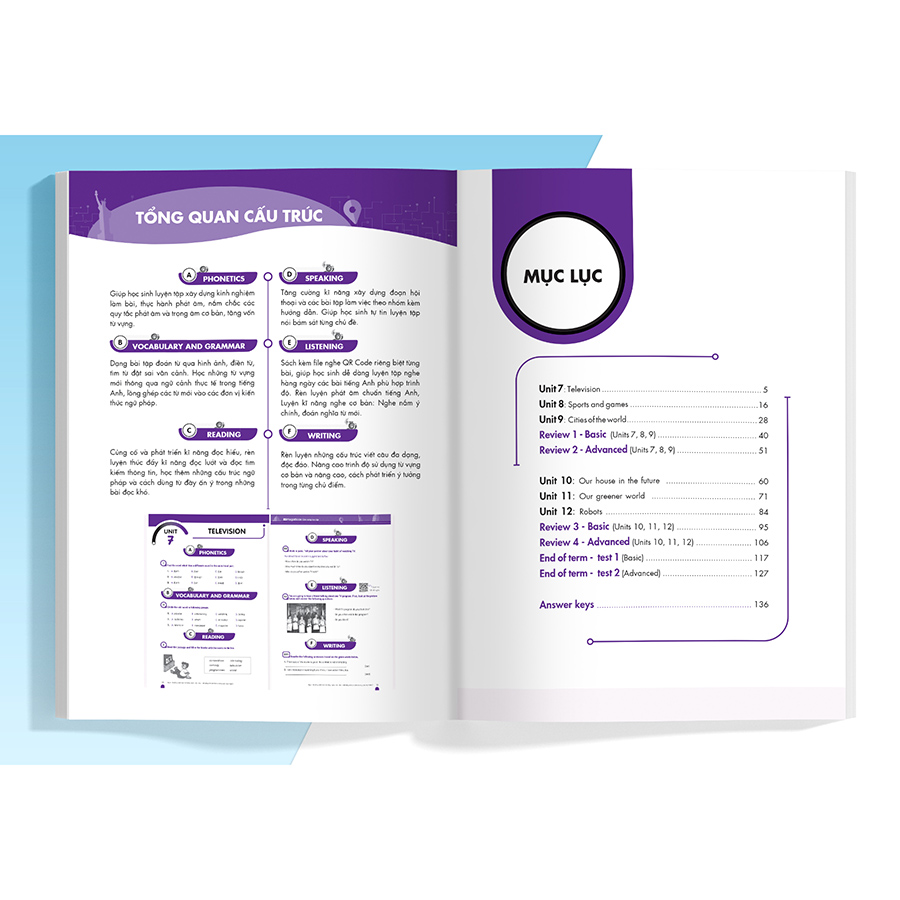 Các bài tập về 4 kỹ năng được liên kết với nhau theo logic bài học giúp cảm em cảm thấy tự tin và phát triển toàn diện kỹ năng nghe, nói, đọc, viết tiếng Anh