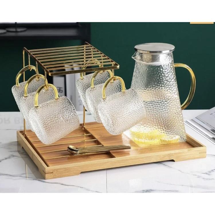 Bộ sane phầm bao gồm: - 1 bình thủy tinh - 6 ly uống nước khía sọc ( KHông bào gồm khay khách nhé ) Thiết kế đẹp mắt, phù hợp tiện dụng và tay