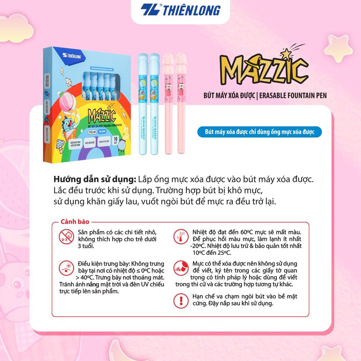 ✨Combo Bút máy và 10 Ống mực xóa được Mazzic Thiên Long - Ngòi cải tiến, trơn, êm với ống mực không lắng cặn