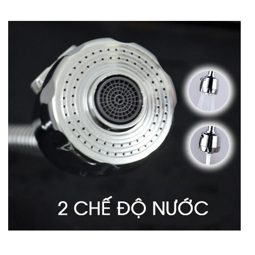 Có 2 chế độ xả nước cho bạn lựa chọn. Đầu vòi có lưới lọc, tạo bọt trong dòng chảy giúp tiết kiệm nước, không bắn nước.