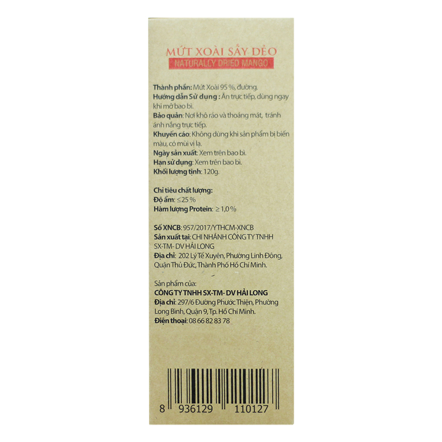 Mứt Xoài Sấy Dẻo Hải Long (120g)