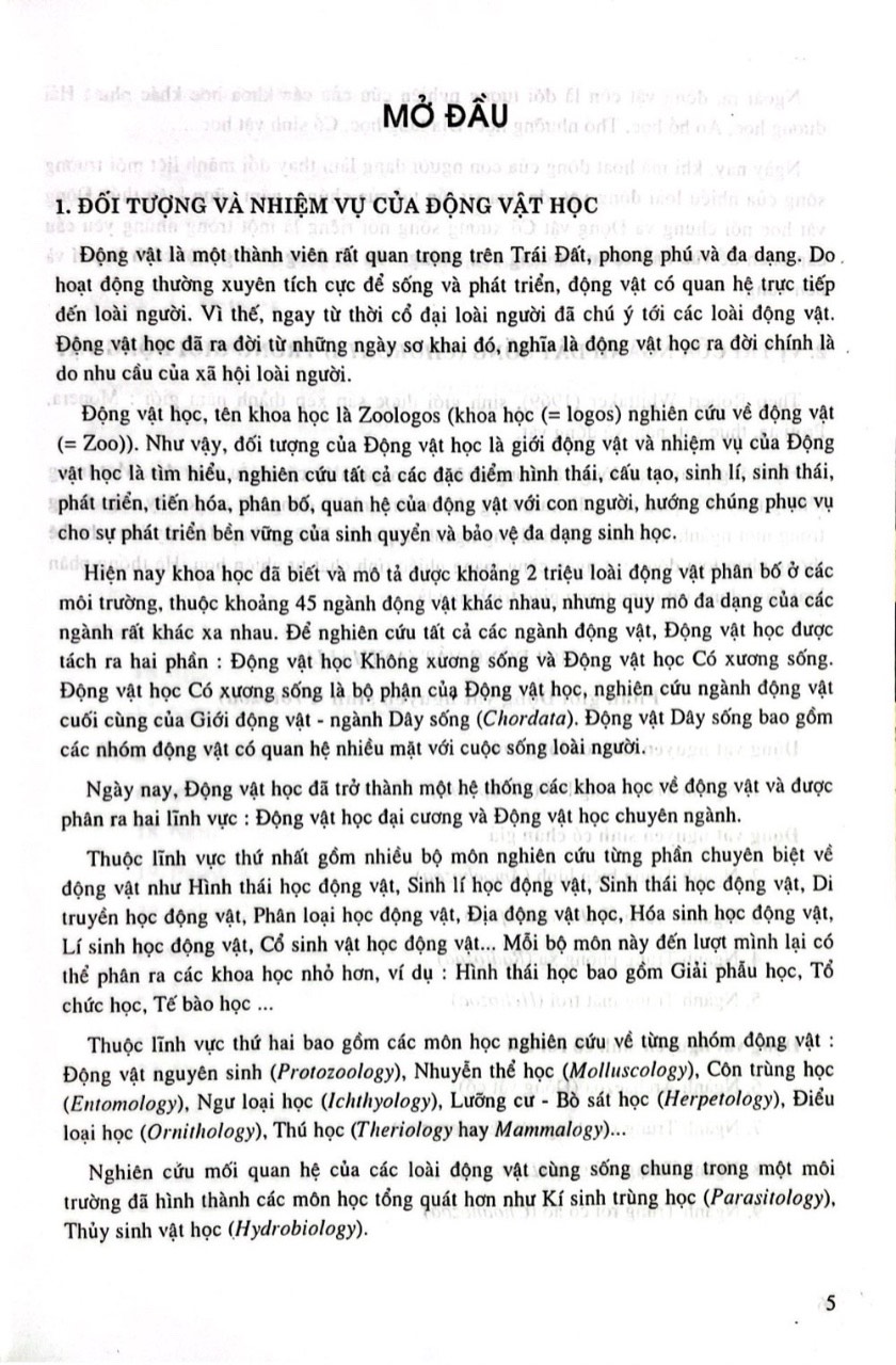 Động vật là một thành viên rất quan trọng trên Trái Đất, phong phú và đa dạng. Do hoạt động thường xuyên tích cực để sống và phát triển, động vật có quan hệ trực tiếp đến loài người. Vì thế, ngay từ thời cổ đại loài người đã chú ý tới các loài động vật. Động vật học đã ra đời từ những ngày sơ khai đó, nghĩa là động vật học ra đời chính là do nhu cầu của xã hội loài người. Động vật học, tên khoa học là Zoologos (khoa học (= logos) nghiên cứu về động vật (= Zoo)). Như vậy, đối tượng của Động vật học là giới động vật và nhiệm vụ của Động vật học là tìm hiểu, nghiên cứu tất cả các đặc điểm hình thái, cấu tạo, sinh lí, sinh thái, phát triển, tiến hóa, phân bố, quan hệ của động vật với con người, hướng chúng phục vụ cho sự phát triển bền vững của sinh quyển và bảo vệ đa dạng sinh học. Hiện nay khoa học đã biết và mô tả được khoảng 2 triệu loài động vật phân bố ở các môi trường, thuộc khoảng 45 ngành động vật khác nhau, nhưng quy mô đa dạng của các ngành rất khác xa nhau. Để nghiên cứu tất cả các ngành động vật, Động vật học được tách ra hai phần : Động vật học Không xương sống và Động vật học Có xương sống. Động vật học Có xương sống là bộ phận của Động vật học, nghiên cứu ngành động vật cuối cùng của Giới động vật - ngành Dây sống (Chordata). Động vật Dây sống bao gồm các nhóm động vật có quan hệ nhiều mặt với cuộc sống loài người. Ngày nay, Động vật học đã trở thành một hệ thống các khoa học về động vật và được phân ra hai lĩnh vực : Động vật học đại cương và Động vật học chuyên ngành. Thuộc lĩnh vực thứ nhất gồm nhiều bộ môn nghiên cứu từng phần chuyên biệt về động vật như Hình thái học động vật, Sinh lí học động vật, Sinh thái học động vật, Di truyền học động vật, Phân loại học động vật, Địa động vật học, Hóa sinh học động vật, Lí sinh học động vật, Cổ sinh vật học động vậ Mỗi bộ môn này đến lượt mình lại có thể phân ra các khoa học nhỏ hơn, ví dụ : Hình thái học bao gồm Giải phẫu học, Tổ chức học, Tế bào học Thuộc lĩnh vực thứ hai bao gồm các môn học nghiên cứu về từng nhóm động vật : Động vật nguyên sinh (Protozoology), Nhuyễn thể học (Molluscology), Côn trùng học (Entomology), Ngư loại học (Ichthyology), Lưỡng cư - Bò sát học (Herpetology), Điểu loại học (Ornithology), Thú học (Theriology hay Mammalogy) Nghiên cứu mối quan hệ của các loài động vật cùng sống chung trong một môi trường đã hình thành các môn học tổng quát hơn như Kí sinh trùng học (Parasitology), Thủy sinh vật học (Hydrobiology).