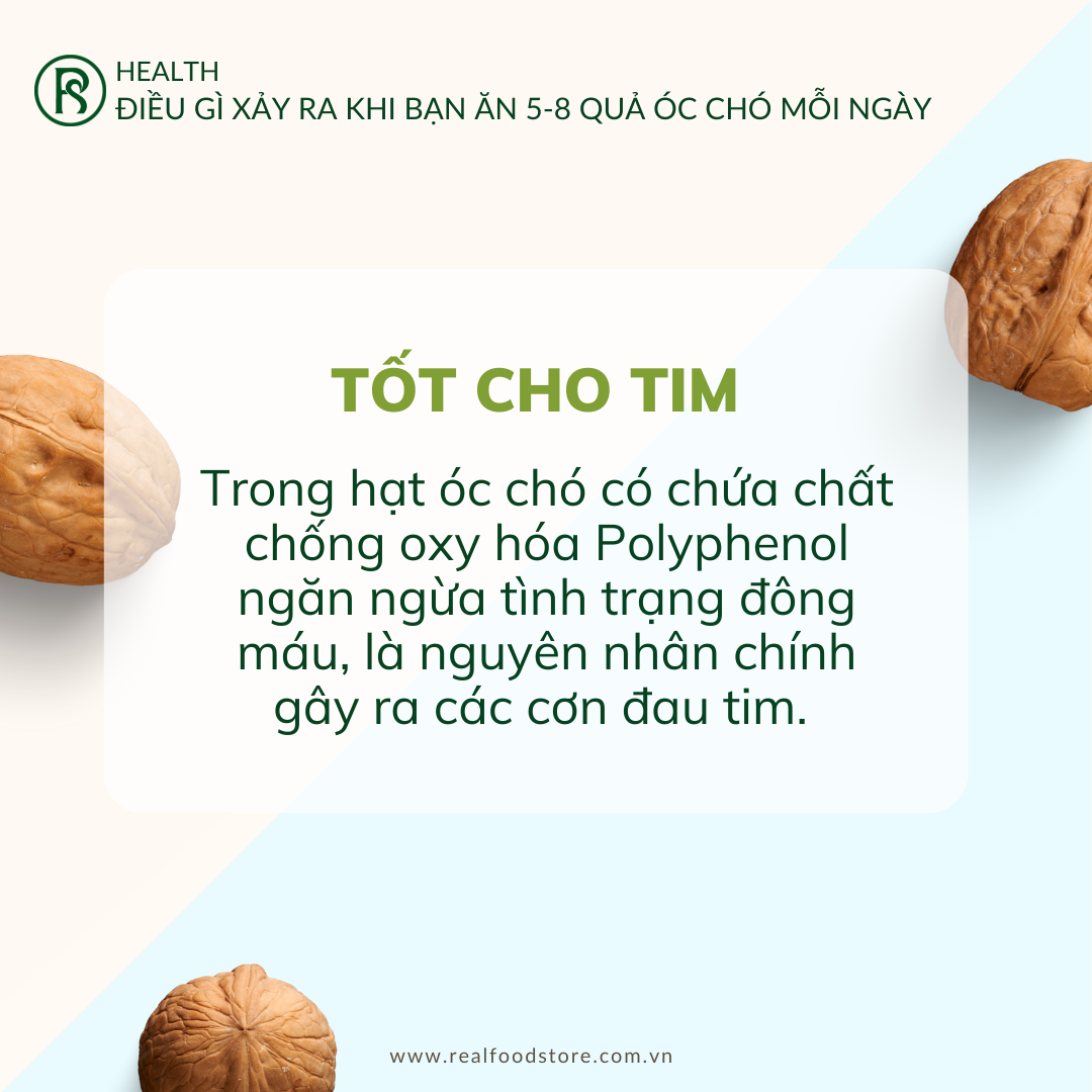 Mua tại TiktokHẠT ÓC CHÓ REAL FOOD là dòng sản phẩm nguyên hạt, có vỏ mỏng, nhân dày; Phù hợp để cung cấp dinh dưỡng cho Mẹ mang thai, Người lớn tuổi, Trẻ em đang trong giai đoạn cần bổ sung dinh dưỡng. Khuyến nghị: nên ăn 7-9 hạt óc chó, tương đương 30g mỗi ngày. WALNUTS REAL FOOD are fully intact product with thin shell but thick kernel. Contain essential nutrients, Walnut is beneficial for pregnant women, elder, child. Recommend: should eat about 7-9 nuts, equivalent to 30g per day. 100% tự nhiên - Xuất xứ từ Mỹ Thành phần: 100% HẠT ÓC CHÓ – 100% WALNUTS