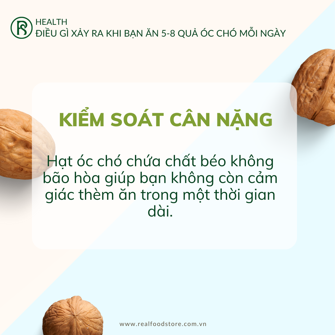 (Hình ảnh mẫu mã, bao bì sản phẩm sẽ thay đổi theo từng giai đoạn) HẠT ÓC CHÓ REAL FOOD được rang giòn, khi ăn có vị ngọt bùi, béo. Phù hợp để cung cấp dinh