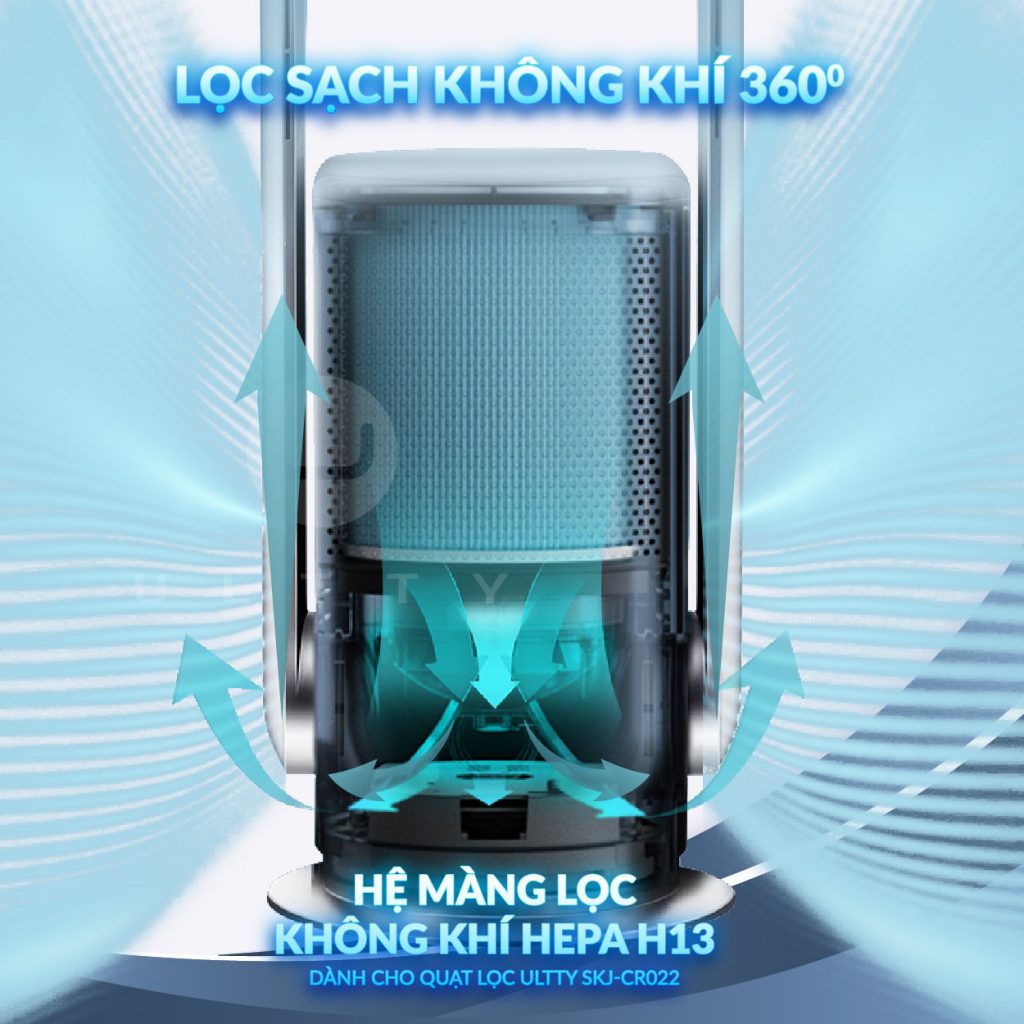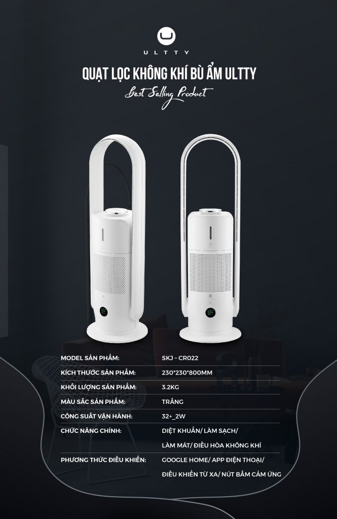 ✨[Nhập CECAMP300KD1 giảm 300K] Combo Máy Lọc Không Khí Bù Ẩm ULTTY SKJ - CR022 Dạng Quạt, Khử Khuẩn Bằng Tia UV + Màng lọc HEPA H14 Nano Phân Tử Bạc - Hàng Chính Hãng