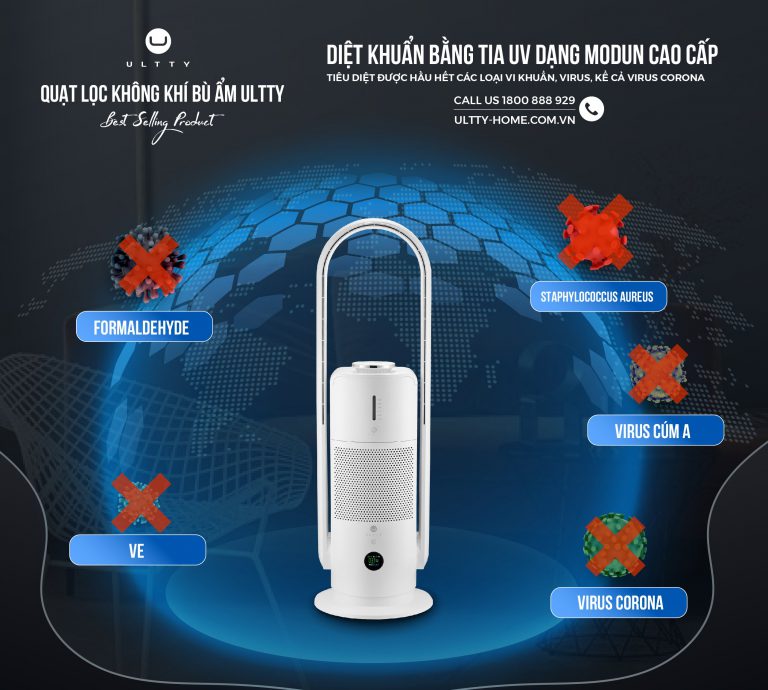 - Sở hữu công nghệ “độc nhất vô nhị” này, quạt Ultty có thể tiêu diệt được hầu hết các loại vi khuẩn, virus, kể cả virus corona Màn hình led hiển thị chất lượng không khí
