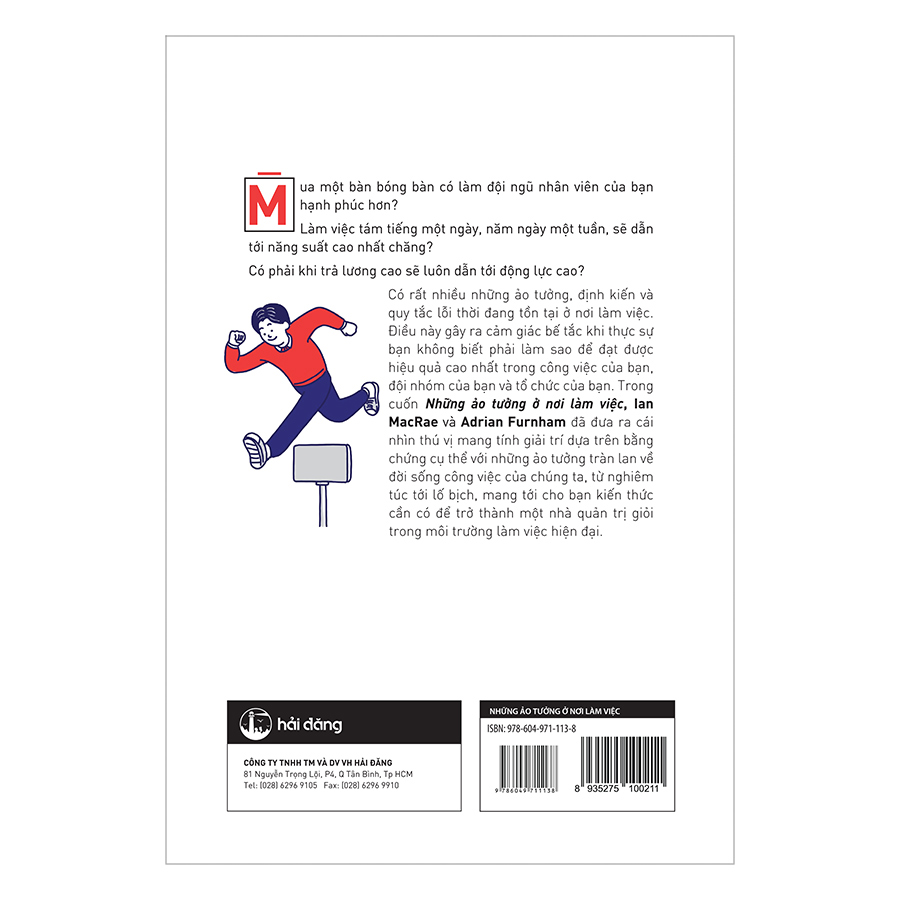 Những Ảo Tưởng Ở Nơi Làm Việc Mua một bàn bóng bàn có làm đội ngũ nhân viên của bạn hạnh phúc hơn? Làm việc tám tiếng một ngày, năm ngày một tuần, sẽ dẫn tới năng suất cao nhất chăng? Có phải khi trả lương cao sẽ luôn dẫn tới động lực cao? Có rất nhiều những ảo tưởng, định kiến và quy tắc lỗi thời đang tồn tại ở nơi làm việc. Điều này gây ra cảm giác bế tắc khi thực sự bạn không biết phải làm sao để đạt được hiệu quả cao nhất trong công việc của bạn, đội nhóm của bạn và tổ chức của bạn. Trong cuốn Những ảo tưởng ở nơi làm việc, Ian MacRae và Adrian Furnham đã đưa ra cái nhìn thú vị mang tính giải trí dựa trên bằng chứng cụ thể với những ảo tưởng tràn lan về đời sống công việc của chúng ta, từ nghiêm túc tới lố bịch, mang tới cho bạn kiến thức cần có để trở thành một nhà quản trị giỏi trong môi trường làm việc hiện đại. Những Ảo Tưởng Quản Trị Có thật là làm việc trong một khoảng thời gian dài hơn sẽ khiến bạn thành công hơn? Bạn có thật sự cần phải che giấu cảm xúc của mình để được tôn trọng trong vai trò nhà quản trị? Có phải trả lương cao hơn luôn dẫn tới thành tích cao hơn? Thế giới quản trị luôn tồn tại những sở thích kỳ quặc, những chuyện hoang đường và sai lạc. Trong cuốn Những ảo tưởng quản trị, Cary Cooper và Stefan Stern sẽ đưa bạn khám phá một hành trình thú vị qua những ảo tưởng phổ biến nhất xung quanh chủ đề quản trị. Họ vạch trần những quan niệm sai lạc, nêu lên sự thật với những điều bị đơn giản hóa thái quá và cách đối phó trực diện với những thói quen nguy hại. Với sự kết hợp lý thú giữa tâm lý học, lý thuyết lãnh đạo và hành vi tổ chức, mang tới cho bạn những hướng dẫn bổ ích và thực tế để tránh rơi vào cái bẫy của sự sáo rỗng, thông tin sai lạc và định kiến. Cuốn sách hấp dẫn này rút ra từ nghiên cứu sâu rộng cùng với các ví dụ kinh doanh của thế giới thực để mang tới cho bạn những kiến thức chân thực về thực tế công việc giúp bạn trở thành một nhà quản trị tài giỏi hơn.  Những Ảo Tưởng Lãnh Đạo Những nhà lãnh đạo giỏi nhất được sinh ra, không phải do rèn luyện. Những nhà lãnh đạo giỏi nhất luôn biết kiểm soát. Những nhà lãnh đạo giỏi nhất là những người có IQ cao nhất. Điều đó có đúng hay không? Cách suy nghĩ xoay quanh việc những gì tạo ra các nhà lãnh đạo vĩ đại nhất ngày càng trở nên lộn xộn bởi các định kiến, những lời hứa hẹn mang tính chất viển vông và giả khoa học. Những nhà lãnh đạo giỏi nhất dựa trên dữ kiện, chứ không phải những sở thích kỳ quặc. Cuốn Những ảo tưởng lãnh đạo thổi tung mớ bùi nhùi đó và đối mặt trực tiếp với các ảo tưởng sai lạc. Jo Owen sử dụng những nghiên cứu đáng tin cậy nhất để phân tích mỗi ảo tưởng, sử dụng các nghiên cứu tình huống kinh doanh quốc tế, lý thuyết về lãnh đạo và những cuộc phỏng vấn đầy kịch tính để phát hiện sự thật. Đây là một sự tìm hiểu hấp dẫn và mang tính thực tế cao về những ý tưởng sai lạc lan rộng về lãnh đạo, điều sẽ giúp bạn đánh giá chính xác những năng lực lãnh đạo của bạn, tạo cảm hứng cho đội nhóm của bạn và trao quyền cho tổ chức của bạn nhờ tư duy khác biệt.