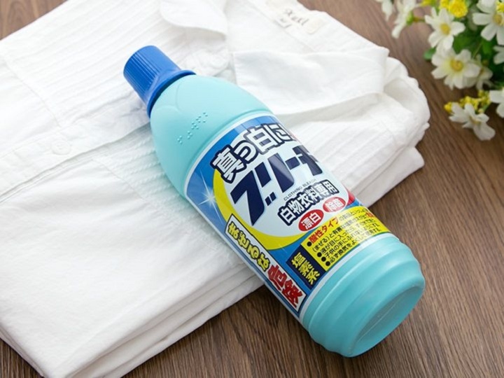 - Giặt máy: 30L nước, dùng 70 ml nước tẩy.