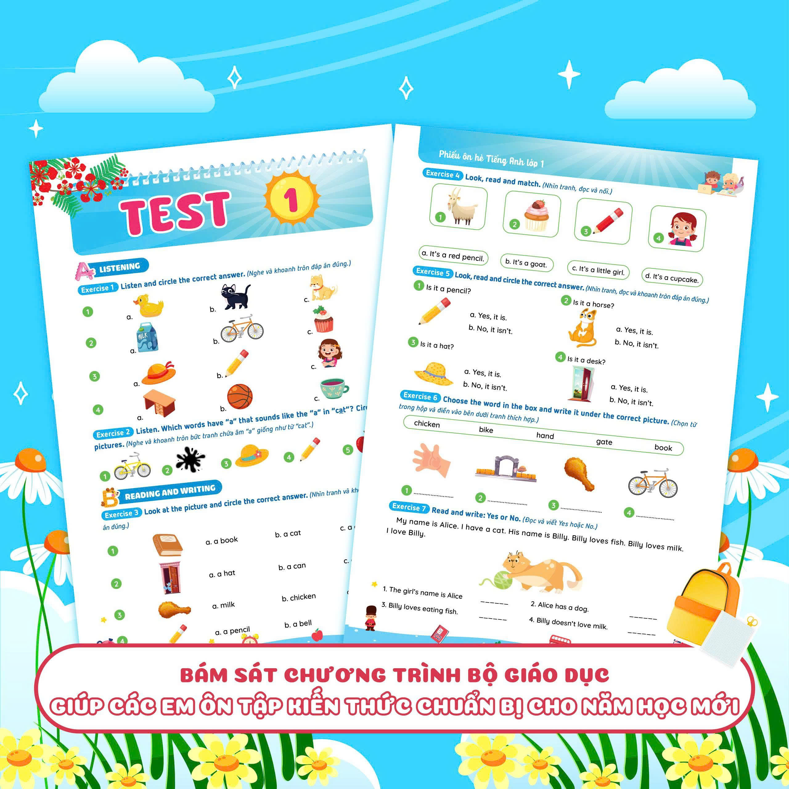 Với nội dung được biên soạn kỹ lưỡng và phù hợp với chương trình của Bộ GD&ĐT, đây là người bạn đồng hành tin cậy của học sinh lớp 1 trong việc chuẩn bị kiến thức Toán - Tiếng Việt - Tiếng Anh một cách toàn diện.