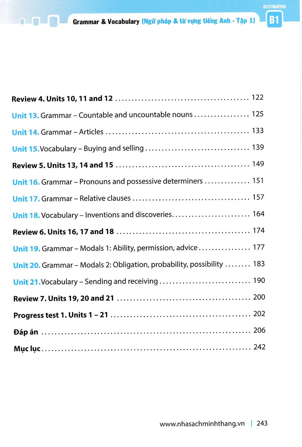 Destination B1 được thiết kế cho các đối tượng đang ở trình độ trung bình - khá (mức độ B1 trên Khung Tham chiếu Ngôn ngữ Chung châu u). Đây là cẩm nang trang bị đầy đủ các kiến thức, bài tập về NGỮ PHÁP và TỪ VỰNG tiếng Anh. Destination B1 là người bạn đồng hành không thể thiếu giúp các em định hướng cho các kỳ thi chuẩn hóa tiếng Anh như B1, IELTS, TOEFL, TOEIC,