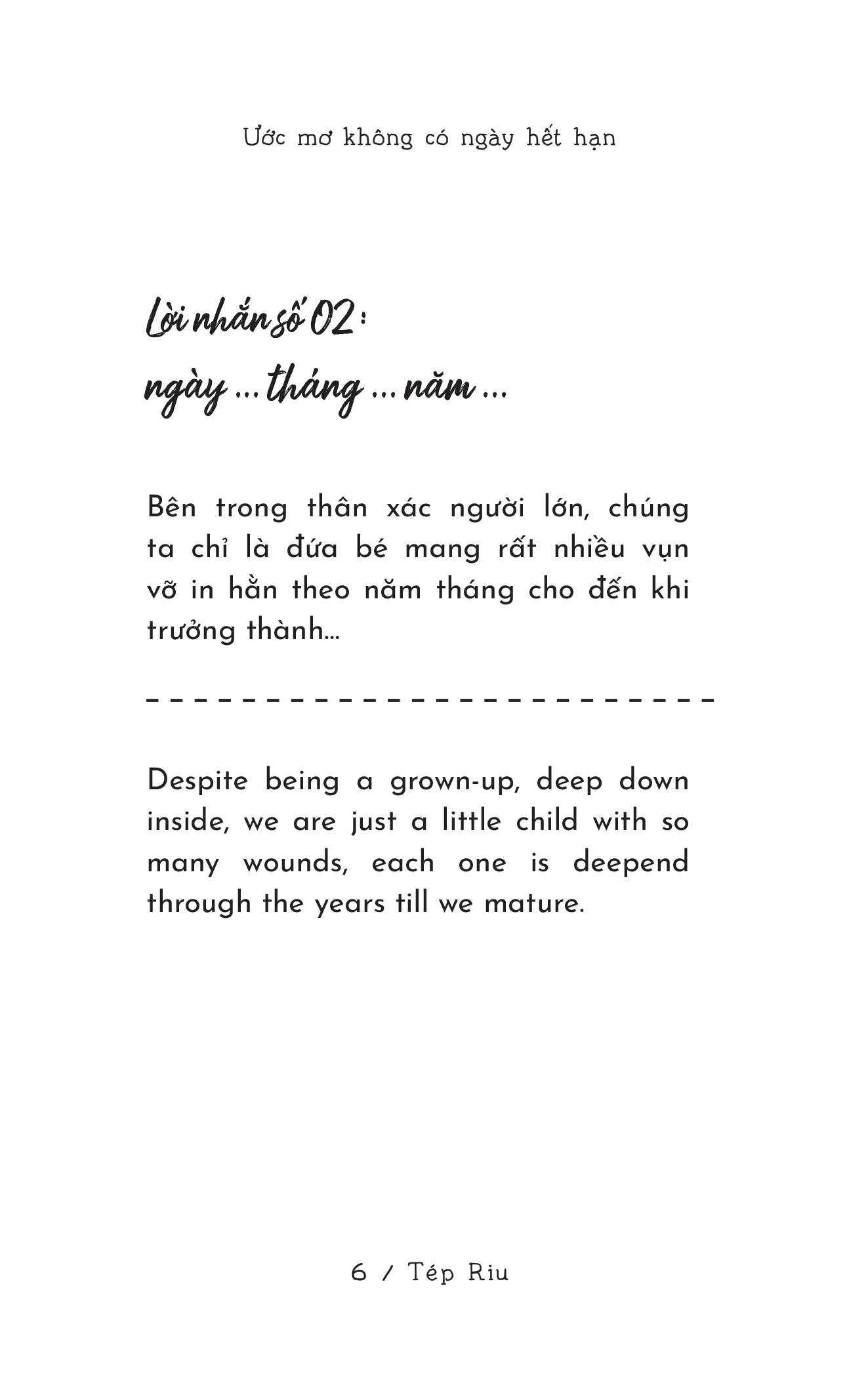 GIỚI THIỆU TÁC PHẨM Just for youth – Ước mơ không có ngày hết hạn Nếu những vấp ngã từng khiến bạn chùn chân, muốn bỏ cuộc thì đây là cuốn sách dành cho bạn. Cuốn sách là những lời nhắn nhủ được viết bằng 2 thứ tiếng Anh - Việt Cổ vũ bạn tiếp tục nỗ lực, tiếp tục tiến lên, bởi tuổi trẻ hữu hạn còn ước mơ thì không! Tuổi trẻ là những ngày mỏi mệt đến bật khóc, nhưng vẫn lặng lẽ ôm lấy ước mơ mà bước tiếp. “Hồi bé mình cứ nghĩ làm người lớn rất oai, họ cứng rắn và mạnh mẽ, như chẳng có gì đánh gục được họ. Nhưng khi dần trở thành người lớn, mình mới hiểu sự mạnh mẽ đó được hình thành bởi những nỗi đau không có ai xoa dịu, sự cứng rắn được tôi luyện khi buồn khổ chẳng có người thấu hiểu…” Cuộc sống của người lớn chính là những ngày chạy deadline trong mỏi mệt, là buổi tối nằm dài trong phòng gục đầu khóc, đèn chưa kịp bật lòng đã tối mịt... Là khi bạn nỗ lực không ngừng nhưng vẫn bị từ chối, là khoảnh khắc bạn phải tự an ủi mình: “Không sao, mai lại bắt đầu lại.” Vấp ngã thì đứng dậy, đi lạc thì quay đầu rẽ lối khác… Điều đáng sợ nhất không phải là thất bại mà là tim bạn chẳng còn thiết tha điều gì nữa. Nếu những khó khăn, thử thách khiến bạn từng muốn buông xuôi, từng gục xuống giữa chặng đường,… thì cuốn sách “Just for youth – Ước mơ không có ngày hết hạn" sẽ như một người bạn đi cạnh bạn khi bạn không còn sức để bước nhanh, vỗ về, cổ vũ bạn. Cuốn sách song ngữ "Just for youth – Ước mơ không có ngày hết hạn" là một cuốn nhật ký cảm xúc được viết bằng 2 thứ tiếng Việt - Anh, bộc bạch nỗi lòng của những người trẻ đang đi trên hành trình tìm kiếm bản thân. Từng dòng chữ trong cuốn sách như ôm lấy sự mệt mỏi của bạn và nói: "Tớ hiểu. Cậu đã rất cố gắng rồi." Và điều kỳ diệu là, ngay sau đó, bạn sẽ thấy mình muốn cố thêm một chút nữa, không vì ai cả, mà vì chính giấc mơ của mình! "Just for youth – Ước mơ không có ngày hết hạn": Cuốn sách tiếp thêm động lực cho bạn, trên hành trình trở thành phiên bản mà bạn mong muốn!