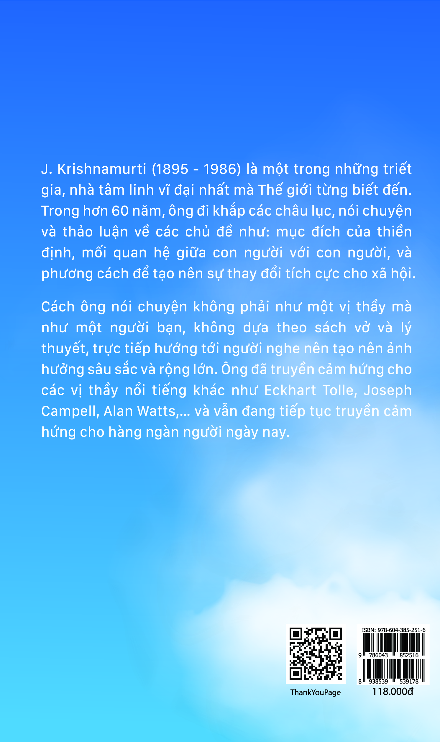 Với kết cấu mạch lạc và được viết bởi ngôn ngữ súc tích, ấn phẩm Krishnamurti Nói Về Tự Do sẽ cho thấy có rất nhiều tầng ý nghĩa khác nhau về Tự do, từ thô, tế đến vi tế; rằng Tự do không phải là kết quả của khát vọng tự do; rằng yêu thương những sự vật vì chính bản thân nó chính là khởi đầu của tự do…