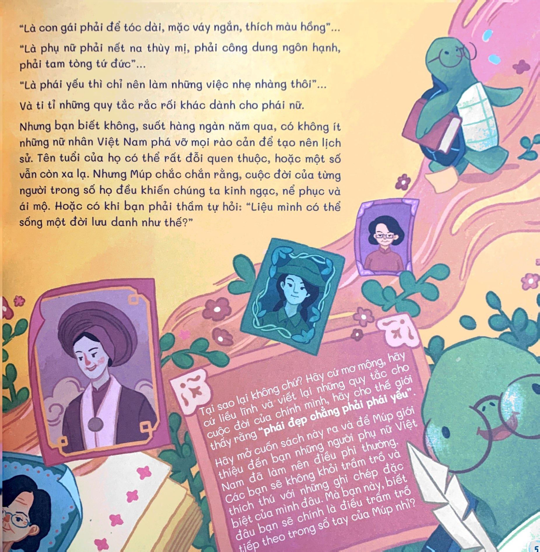 Các bạn nhỏ vẫn thường được người lớn kể cho nghe biết bao câu chuyện lịch sử mà ở đó, thường có những ông vua anh minh, được mệnh danh là “thiên tử”, những vị tướng oai dũng, tầm vóc to lớn, đầu đội trời, chân đạp đất hay những thần đồng, ông trạng cũng toàn là những người đàn ông làm vinh danh gia tộc, dòng họ hay tài trí hơn người. Sẽ thế nào nếu chúng ta cũng tìm hiểu về các giai đoạn lịch sử dân tộc nhưng thông qua câu chuyện của những người phụ nữ nhì? Để các bạn biết rằng lịch sử Việt Nam cũng có nữ hoàng, nhiều không kể xiết các vị nữ tướng anh dũng giết hàng vạn giặc và cả những tài nữ khiến đấng mày râu phải quỳ gối nể phục.