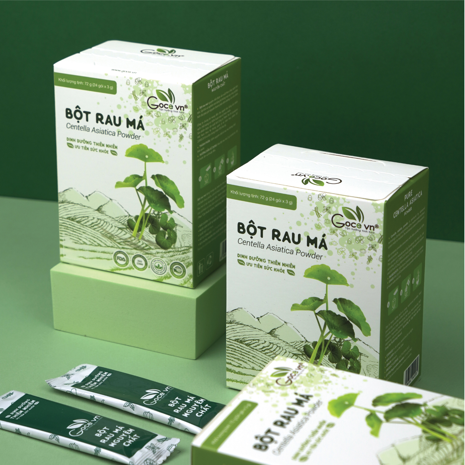 • 1 Hộp Bột Rau Má - Khối lượng tịnh:  72g ( 24 gói x 3g)  - Thành phần: 100% từ rau má.