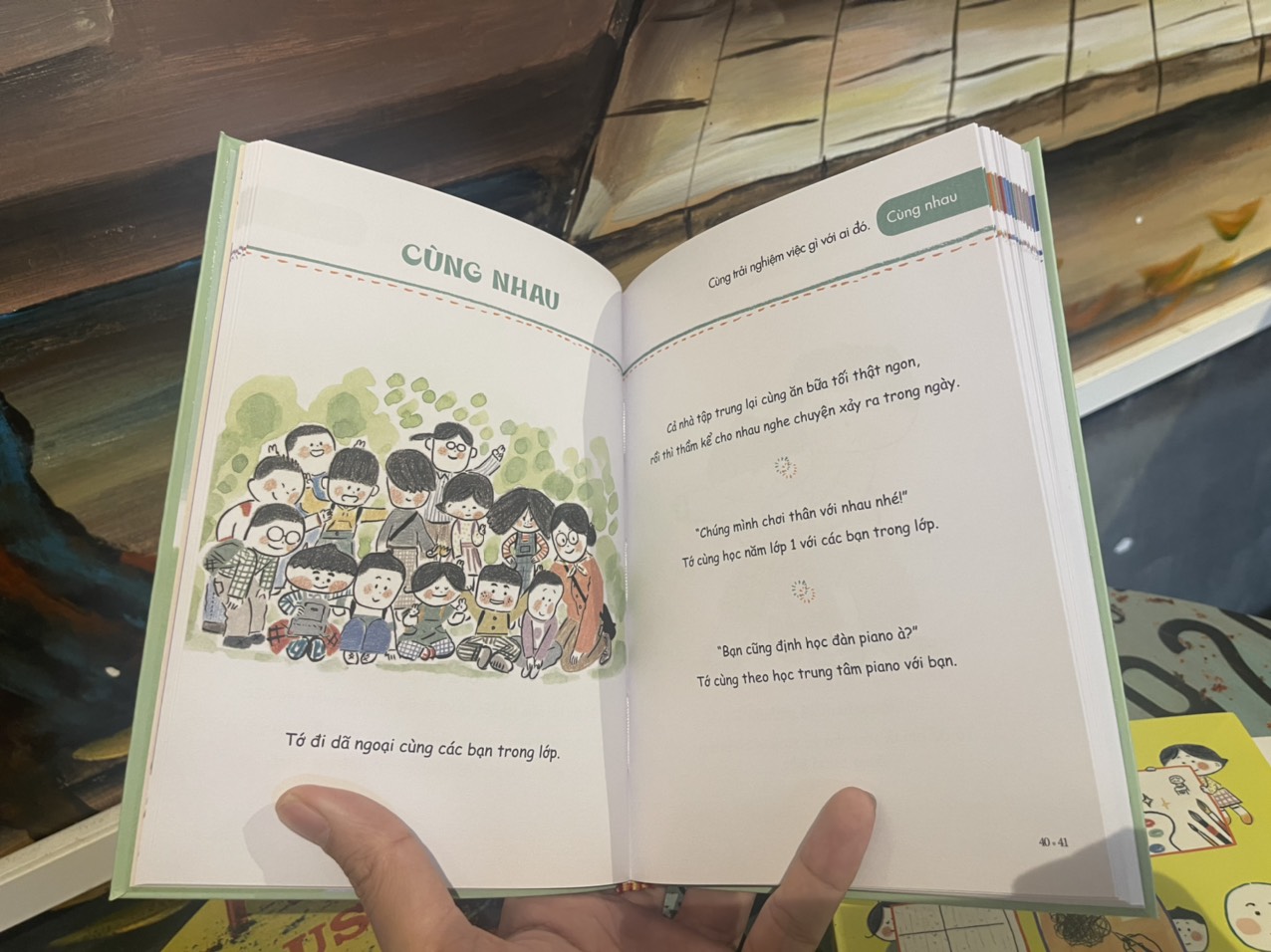 Bộ sách Khi tớ lên 9 gồm 4 cuốn, cuốn Từ điển chung sống giúp trẻ tiểu học còn vụng về trong việc kết nối với người khác. Với 80 từ là các hành động cần thiết cho quá trình giao tiếp, đồng thời hướng dẫn sử dụng các từ ngữ đó một cách hợp lý. Sách cũng giúp trẻ tìm hiểu về những cảm xúc và hành vi khác nhau được trao đổi với mọi người trong cuộc sống hàng ngày, kể cả ở trường và ở nhà….