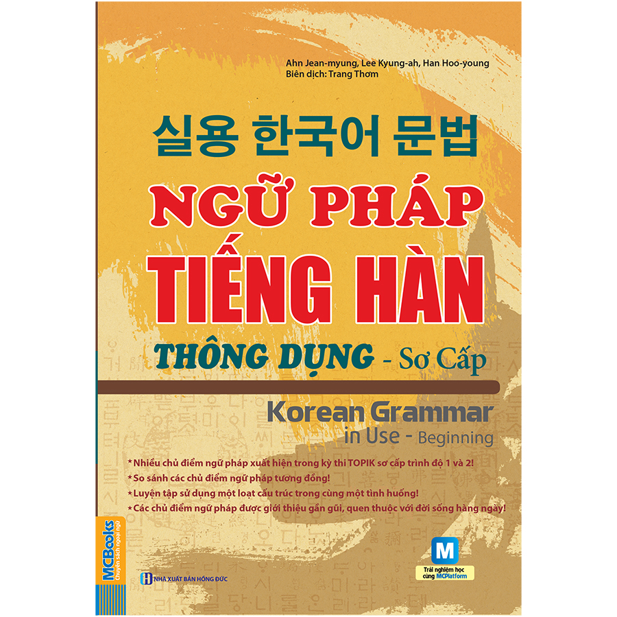 Ngữ pháp tiếng Hàn thông dụng - Sơ cấp là quyển đầu tiên trong bộ Ngữ pháp tiếng Hàn thông dụng - Korean Grammar in use. Cuốn sách này tổng hợp những phần ngữ pháp thường xuất hiện trong các giáo trình ở trình độ sơ cấp mà bạn có thể bắt gặp trong đời sống hàng ngày trên đất nước Hàn Quốc, rất phù hợp những học sinh bắt đầu làm quen với tiếng Hàn và đặt những bước chân đầu tiên lên con đường khám phá thứ ngôn ngữ này. Đây có thể coi là cuốn sách chất lượng TUYỆT ĐỐI VƯỢT TRỘI so với các sách khác trên thị trường.