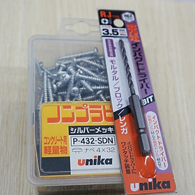 ✨Combo Vít bê tông 4mm đầu dù Unika P432 & mũi khoan tường đuôi lục giác 3.5mm (không cần tắc kê nhựa)