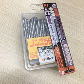 ✨Combo Vít bê tông 5mm đầu bằng F570 & Mũi khoan tường 4.3mm đuôi lục giác Unika (Không cần tắc kê nhựa)