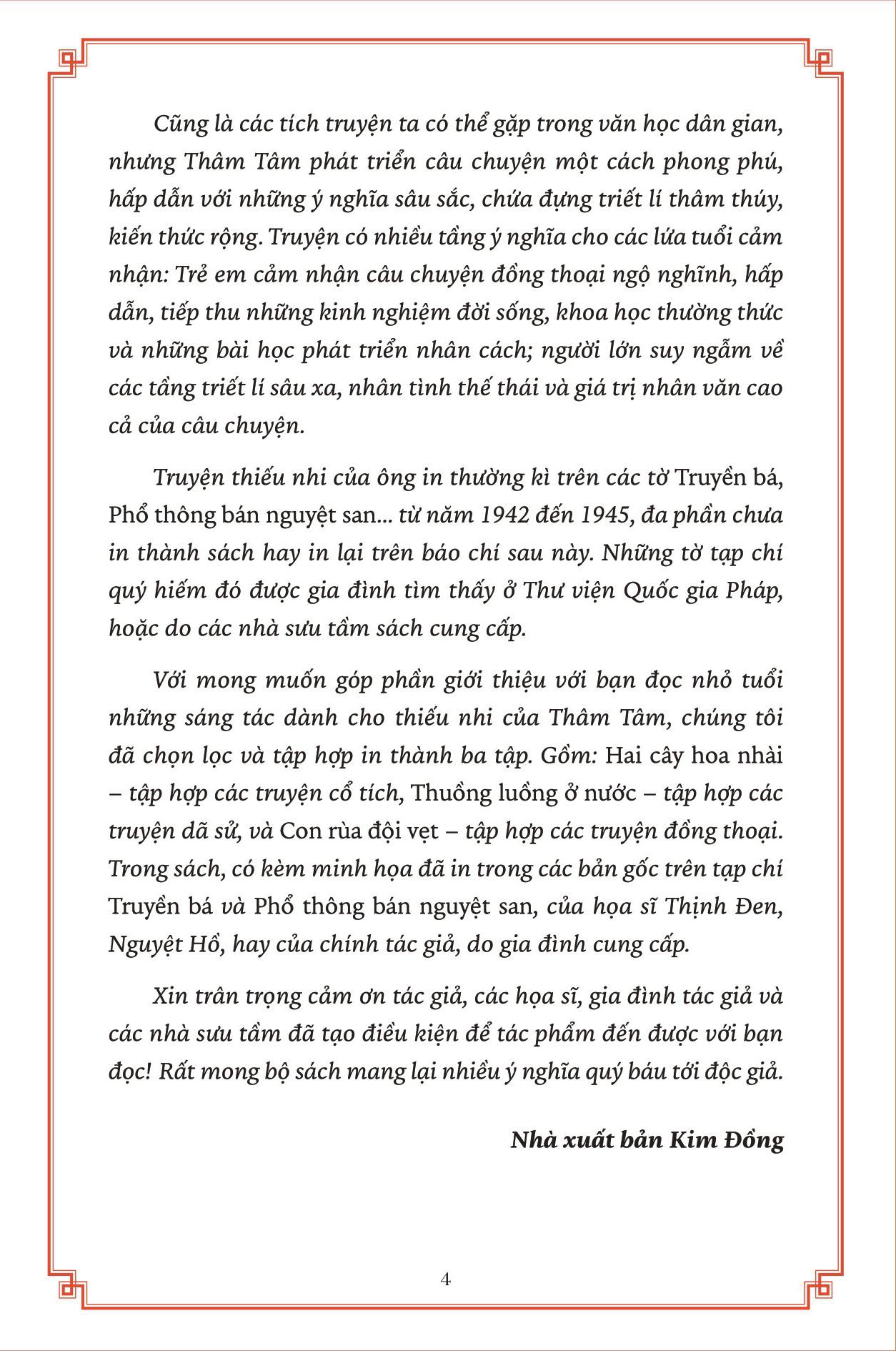 Bao trùm trong sáng tác của Thâm Tâm là màu sắc văn hóa Đông Phương đặc sắc. Có lẽ vì vậy truyện cổ tích, dã sử và đồng thoại viết cho thiếu nhi của ông rất gần gũi, tựa như những sáng tác dân gian, nhưng lại có những nét mới lạ và độc đáo.