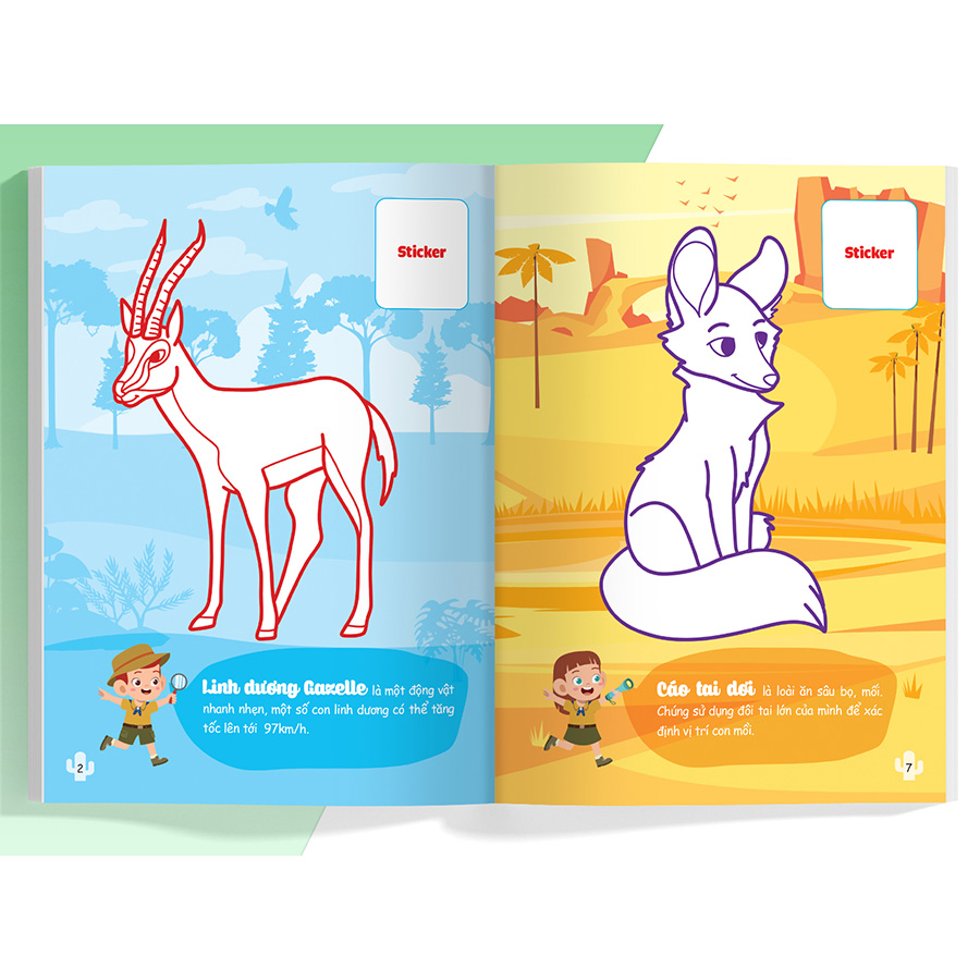 Sách tặng kèm Sticker hình động vật gắn liền với từng chủ đề.