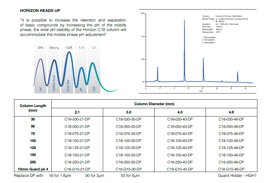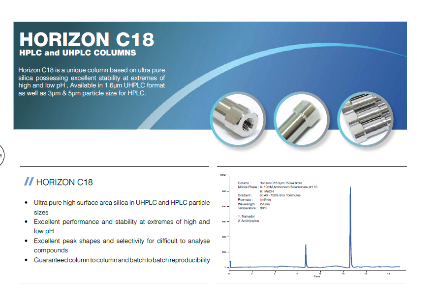 - Các cột HPLC Horizon cung cấp hình dạng đỉnh peak cao, peak tách biệt và có hiệu suất lâu dài.
