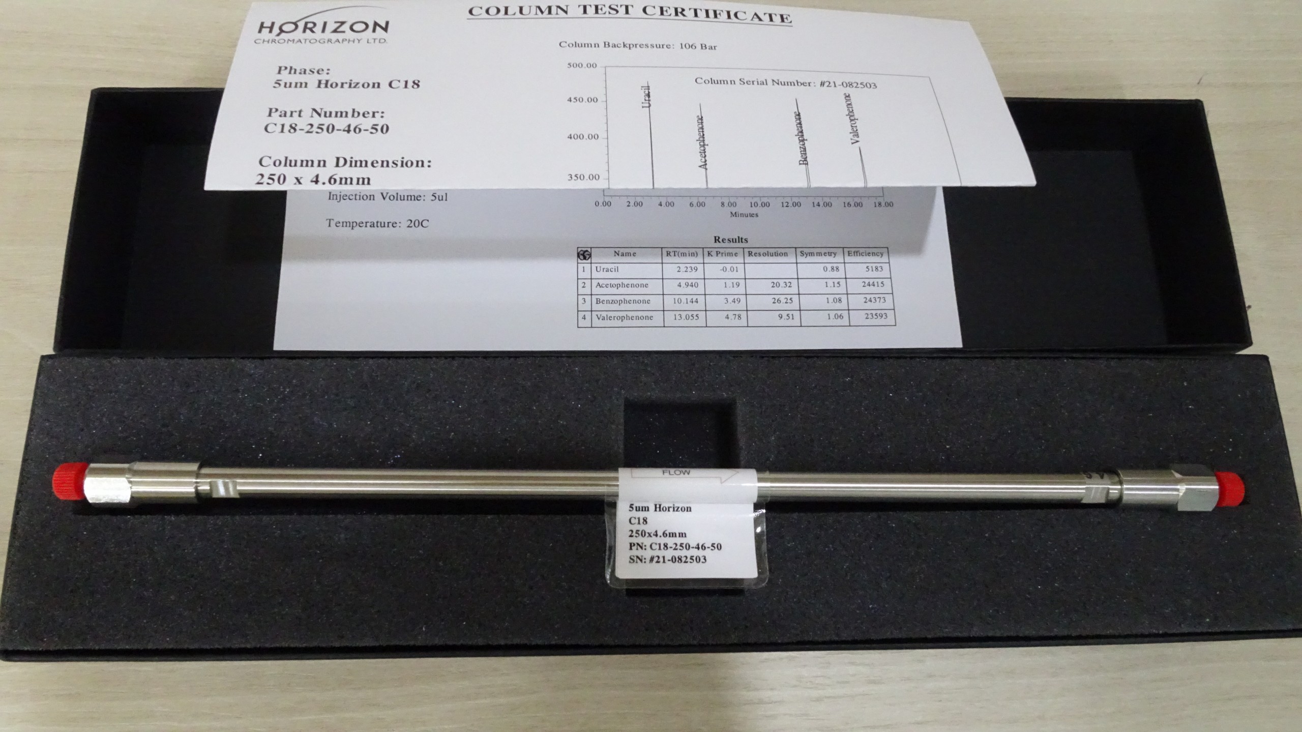 - Các cột HPLC Horizon được kiểm tra chất lượng xuất xưởng bằng cách sử dụng thử nghiệm kiểm soát chất lượng nghiêm ngặt nhất trong kỹ thuật sắc ký.