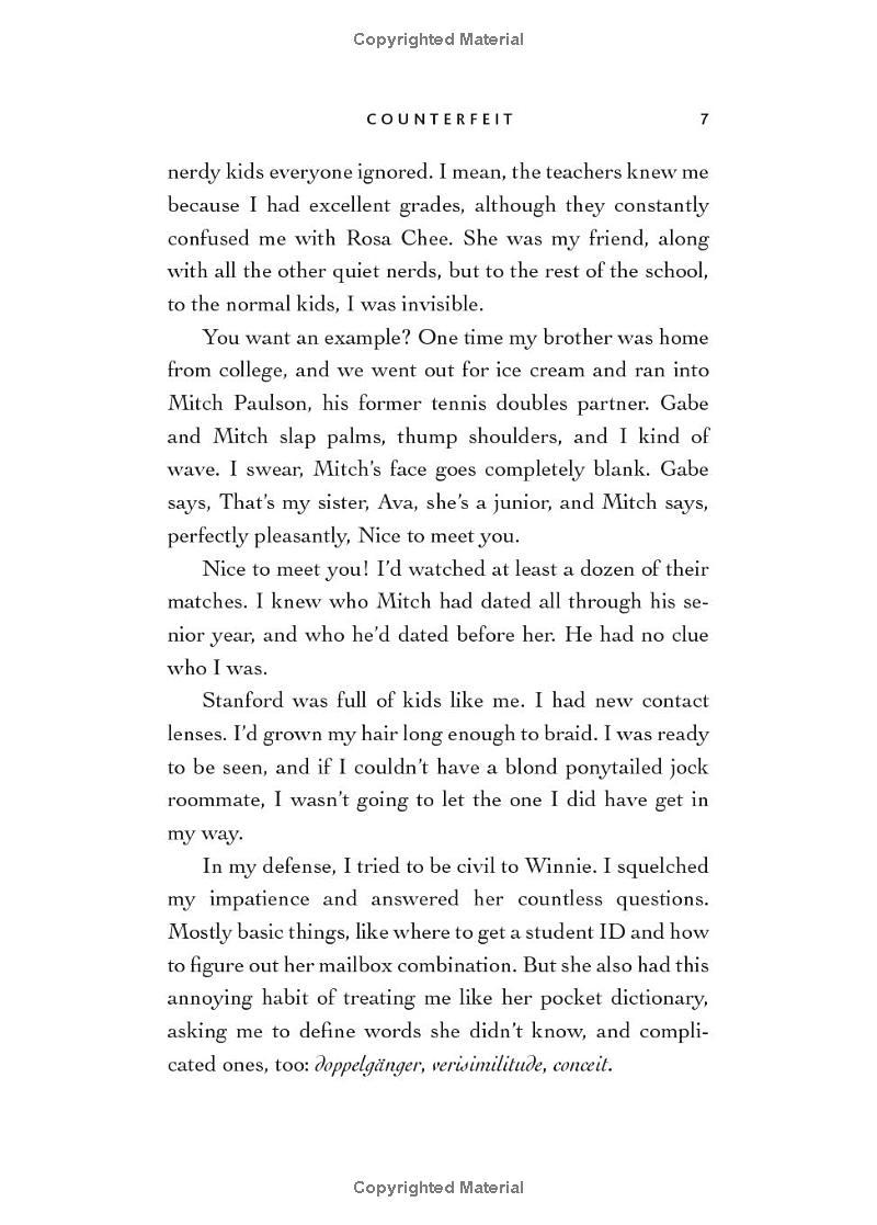 Meet Winnie: Ava's old college roommate. Once awkward, quiet and apparently academically challenged, she left Stanford in a shroud of scandal. But now, she is charismatic, wealthy and has returned to town dripping in designer accessories. An actual perfect life.