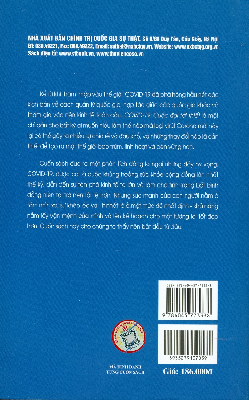 Mua tại TiktokSách nghiên cứu tổng quan, biện pháp chính sách mới, ví dụ thực tế và đánh giá những tác động mà Covid-19 gây ra đối với thế giới. Được viết vào thời điểm đại dịch Covid-19 đang lây lan trầm trọng trên toàn cầu, nội dung sách gồm 3 chương: