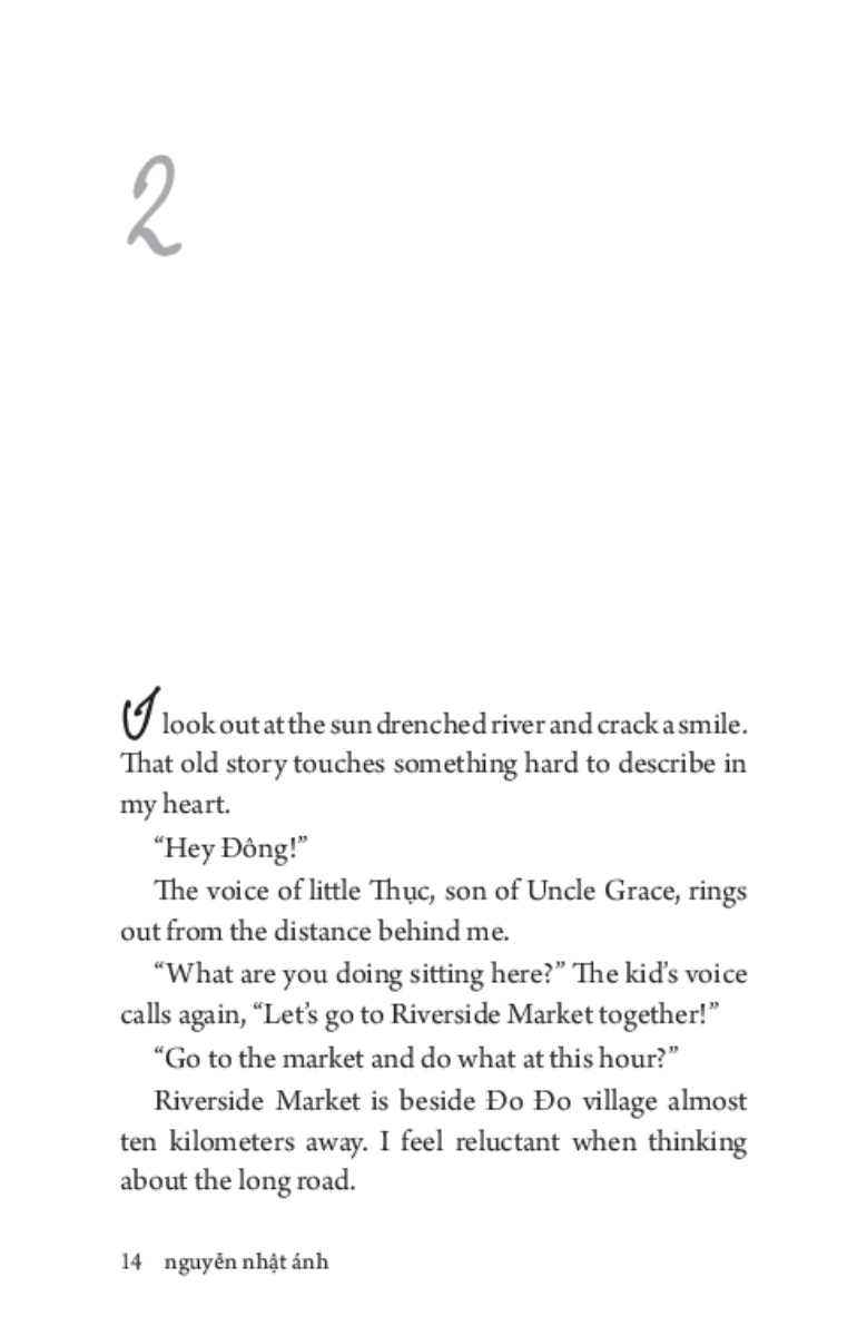 This time I will tell her that I love her very much, such a big love, and the reason why the last time I didn’t dare express my love in a natural way is because I thought I was about to die. I will tell her the story of how the doctors misdiagnosed me, and that is why I didn’t return to the village. In this spot, I will lie to Turtle a bit. I am not yet ready to mention the real reason that kept me in Sài Gòn for three whole years. The story of her origin, I will tell her later so she knows.