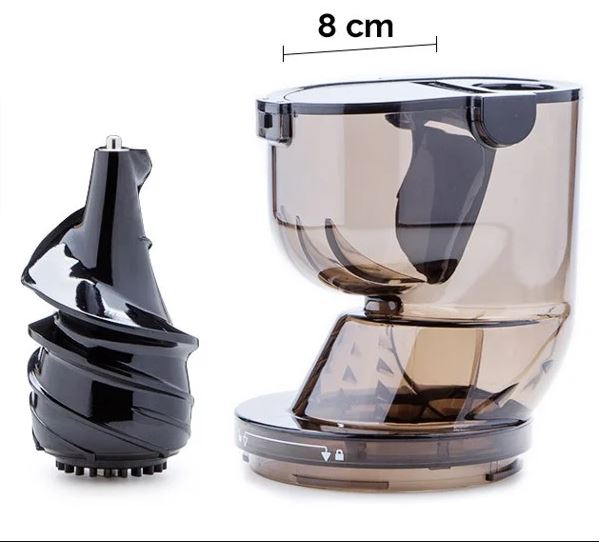 - Trục ép với thiết kế thông minh dễ dàng cuốn thực phẩm từ ống dẫn và bắt đầu quá trình ép của mình. Trục ép lớn, khỏe cho phép ép được các loại rau như: cần tây, cải xoăn...các loại trái cây cứng như cà rốt, ổi, dứa... hoặc dễ dàng chinh phục được những loại trái cây mềm như đu đủ, xoài...