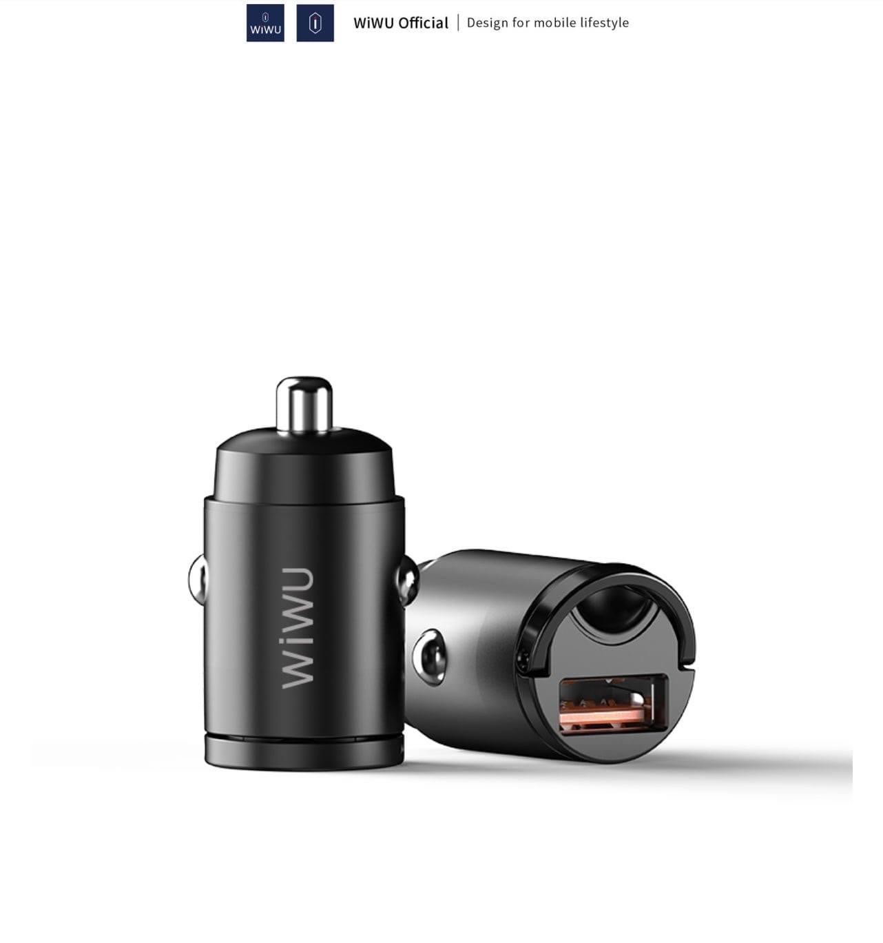 ✨CỦ SẠC ĐIỆN THOẠI MINI TRÊN Ô TÔ WIWU PC301 Chất Liệu Hợp Kim Kẽm, Màu Đen Sạc Nhanh QC 3.0 - Hàng Chính Hãng