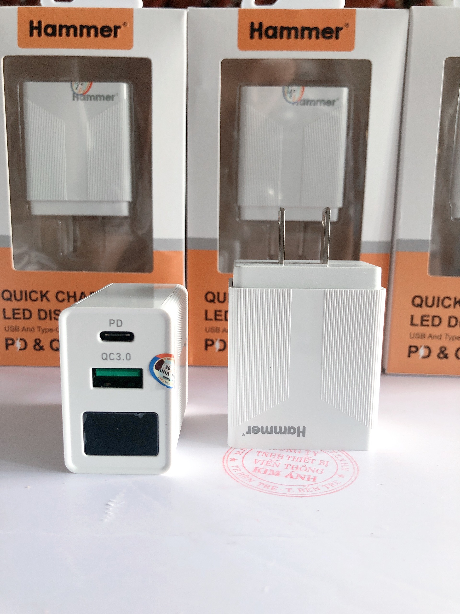 ✨Củ sạc nhanh Ham mer H09 công suất 18W, PD & Quick Charge 3.0A, có LCD hiển thị dòng điện, Hàng chính hãng bảo hành 12 tháng