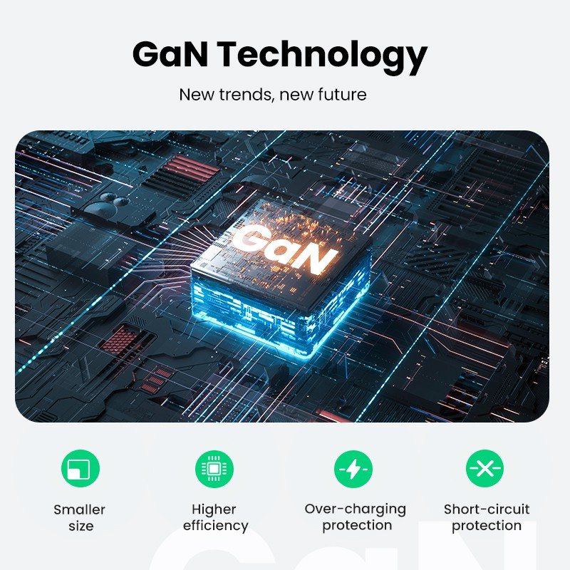 GaN (Nitrit Gallium) là vật liệu bán dẫn thế hệ thứ ba mới. Nó có đặc tính chịu điện áp cao, tần số cao, hiệu suất cao và ổn định.