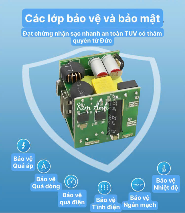 Củ sạc xuất Nhật GaN 45W KFLY ( JHX-AC2048) đạt chứng nhận PSE tiêu chuẩn Nhật Bản, bảo hành chính hãng 12 tháng Sản phẩm xuất Nhật do Kim Ánh nhập trực tiếp về, trên thân có khắc dấu chứng nhận PSE tiêu chuẩn Nhật Bản, qua kiểm định nghiêm ngặt an toàn thiết bị điện lưu hành tại Nhật , shop sẽ gửi kèm giấy chứng nhận theo đơn hàng đến cho khách Cam kết hàng xuất thị trường Nhật, có chứng nhận PSE Nhật Bản, sai 1 đền 100 Có QR dán trên sản phẩm check kiểm tra chính hãng, và bảo hành 12 tháng GaN hay Gallium Nitride là một trong những chất bán dẫn phổ biến nhất bên cạnh Silicon. Tuy vậy, GaN lại có những ưu điểm vượt trội Silicon nhờ khả năng chịu nhiệt tốt hơn, có thể chịu điện năng cao và độ di động điện tử cao gấp nhiều lần. GaN thể hiện hiệu quả rất tốt trong việc xử lý thiết bị điện năng cao ở các linh kiện sạc nhanh điện thoại. Ngoài ra, công nghệ anten radio 5G cũng sử dụng GaN GaN giúp thu nhỏ kích cỡ của các loại sạc nhanh, đồng thời tối ưu nhiệt lượng tỏa ra từ củ sạc, khiến sạc mát hơn và an toàn hơn.   Công suất hiện tại đầu ra: 45W Loại giao diện Loại-c + USB-A Hình thức sạc áp dụng: sạc nhanh PD 45W Thông số đầu ra 100-240V 50~60Hz 1.2A Mô hình áp dụng: Điện thoại di động, máy tính bảng... Phích cắm tiêu chuẩn : tiêu chuẩn nhật bản Sản phẩm xuất Nhật sử dụng vật liệu ABS+ PS chống cháy nổ, cứng cáp, bền bỉ, an toàn khi sử dụng Tương thích đa giao thức PD3.0 - PD 2.0 và các giao thức sạc nhanh khác, thích hợp sạc các thiết bị thông minh Củ sạc có chức năng tự phân bố dòng điện sạc an toàn khi mất điện mà có lại đột ngột, có chức năng bảo vệ khi quá áp, quá dòng, bảo vệ tĩnh điện, bảo vệ ngắn mạch, bảo vệ nhiệt độ không nóng khi dùng Đặc biệt chân cắm gấp gọn thuận tiện mang theo, bỏ túi xách mà không làm trầy xước các vật dụng khác Những ai yêu thích dùng hàng Nhật nên sắm cho mình em này về trải nghiệm nhé