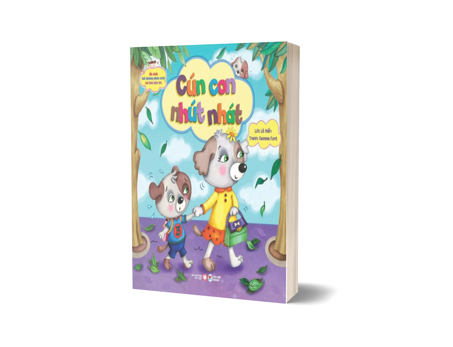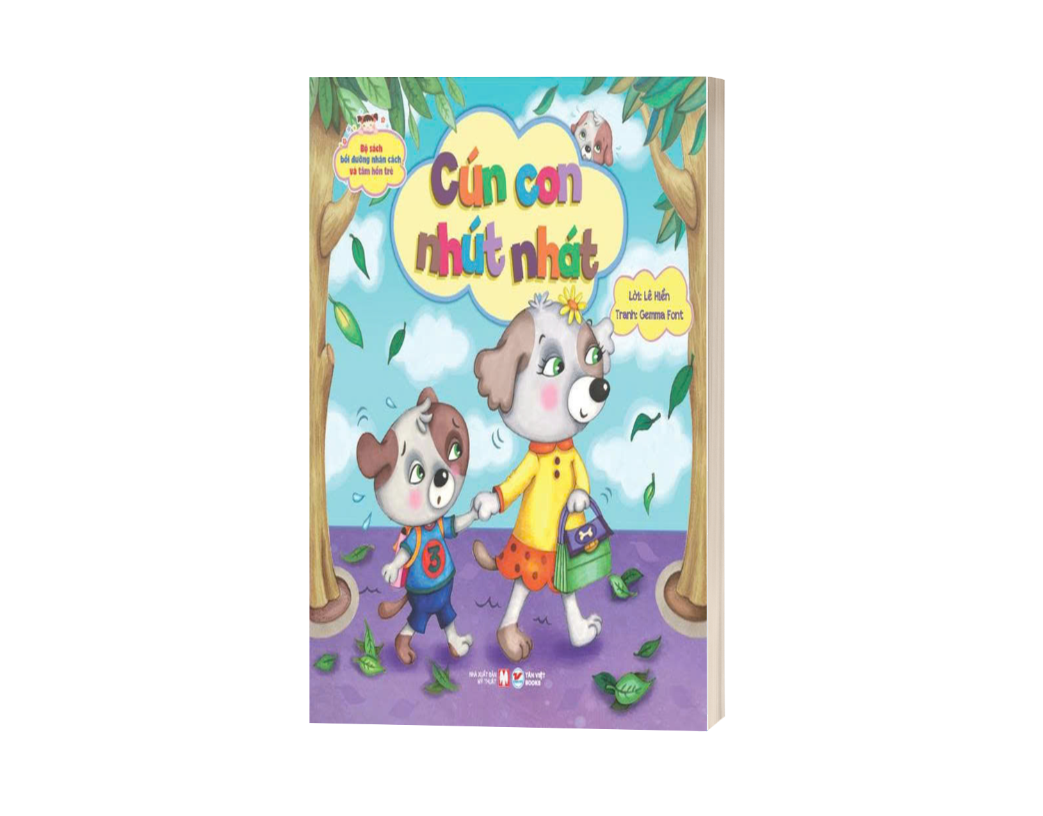 Trong đó, cuốn Bồi dưỡng nhân cách và tâm hồn trẻ - Cún con nhút nhát có nội dung: Ngày đầu tiên theo mẹ đến trường, Cún Con có vẻ ngại ngùng. Mỗi lần gặp ai trên đường đi, cậu đều thẹn thùng nấp sau lưng mẹ. Cún Con cũng chưa hòa đồng với các bạn cùng lớp, cứ lẳng lặng ngồi một mình. Nhờ có sự giúp đỡ, động viên của cô giáo và tình cảm của bạn bè mà Cún Con đã vượt qua chính mình, bỏ được tính nhút nhát và trở nên tự tin hơn. Cún Con đã rút ra được bài học gì cho mình từ bài tập đọc cô giáo dạy trên lớp? Bé hãy đọc truyện để biết nhé.