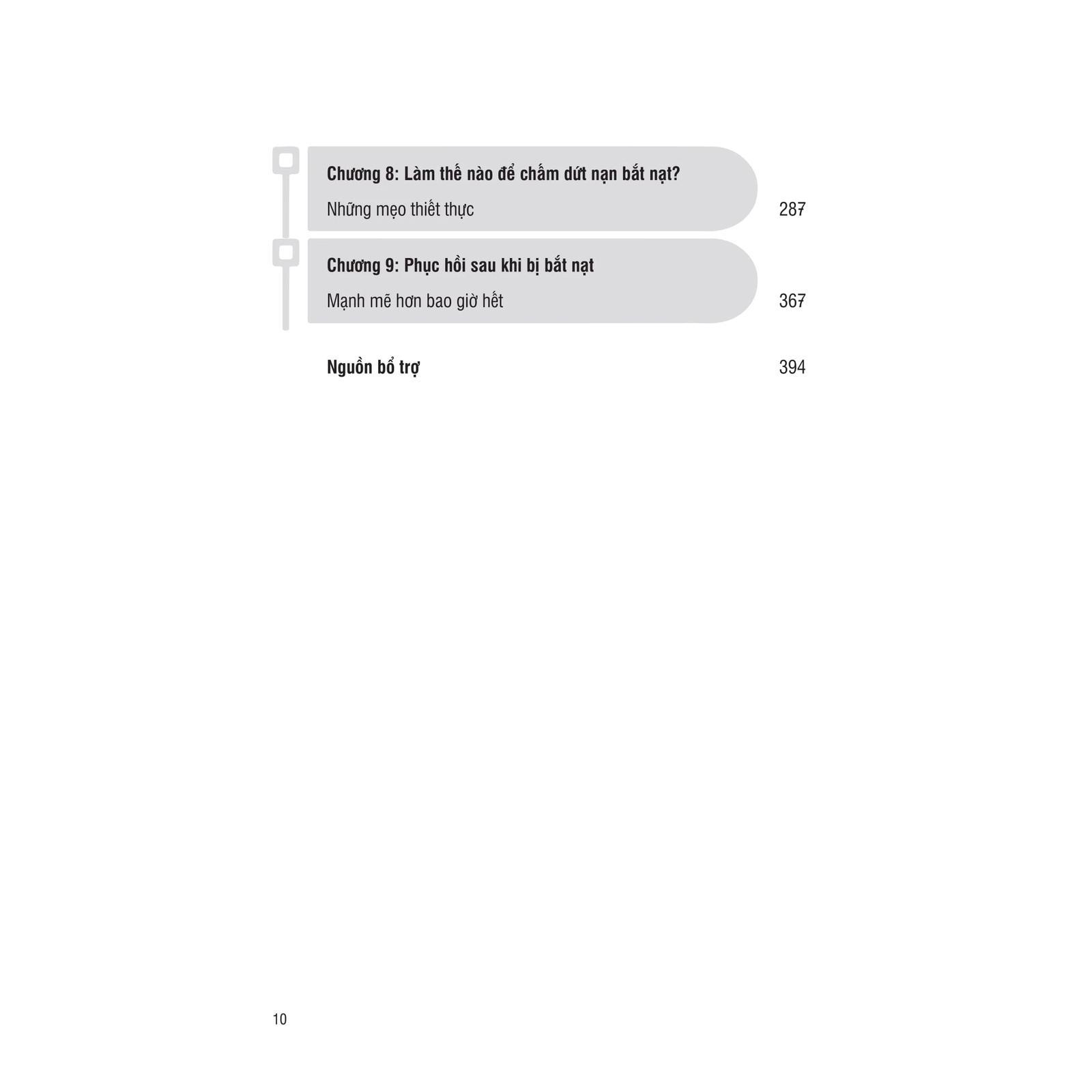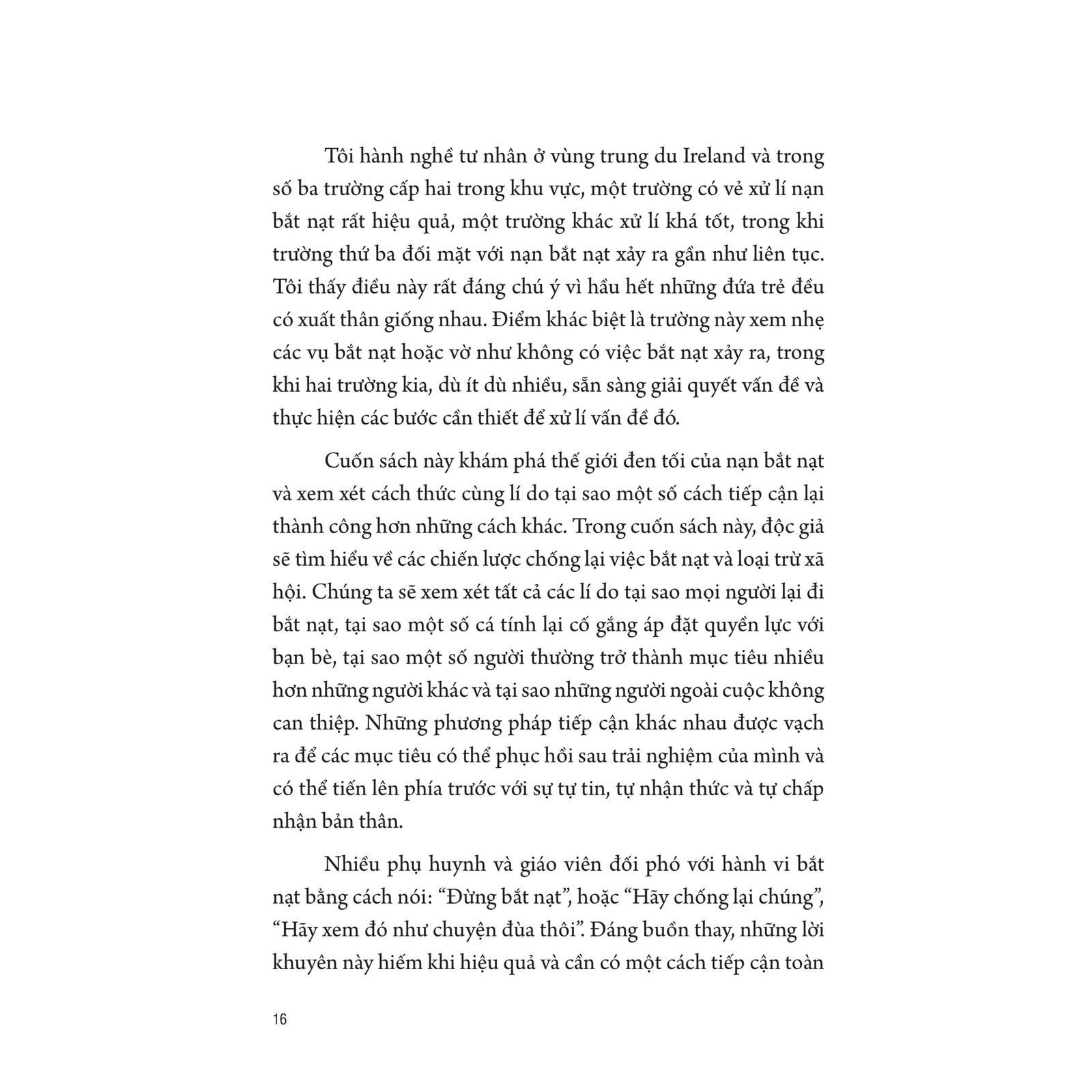 Cuốn sách Cùng Con Chống Nạn Bắt Nạn - Các công cụ thiết thực để bảo vệ và xây dựng sự mạnh mẽ cho con bạn. Cuốn sách khám phá thế giới đen tối của nạn bắt nạt, tất cả các lí do tại sao mọi người lại đi bắt nạt, tại sao một số cá tính lại cố gắng áp đạt quyền lực với bạn bè, tại sao một số người thường trở thành mục tiêu nhiều hơn những người khác và tại sao những người ngoài cuộc không can thiệp. Từ đó, tác giả đưa ra những phương pháp tiếp cận khác nhau để cha mẹ bảo vệ con, giúp con phục hồi sau trải nghiệm bị bắt nạt, đồng thời xây dựng sự tự tin, kiên cường và mạnh mẽ ở con.