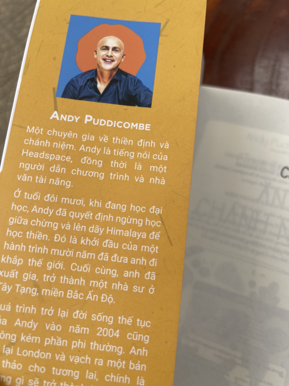 Tác giả: Andy Puddicombe là một tác giả người Anh, diễn giả và là chuyên gia về thiền định, chánh niệm. Andy là tiếng nói của Headspace – là một tổ chức cung cấp dịch vụ chăm sóc sức khỏe tâm lý và sức khỏe toàn diện “dễ tiếp cận nhất thế giới”, đồng thời ông là một người dẫn chương trình và nhà văn tài năng