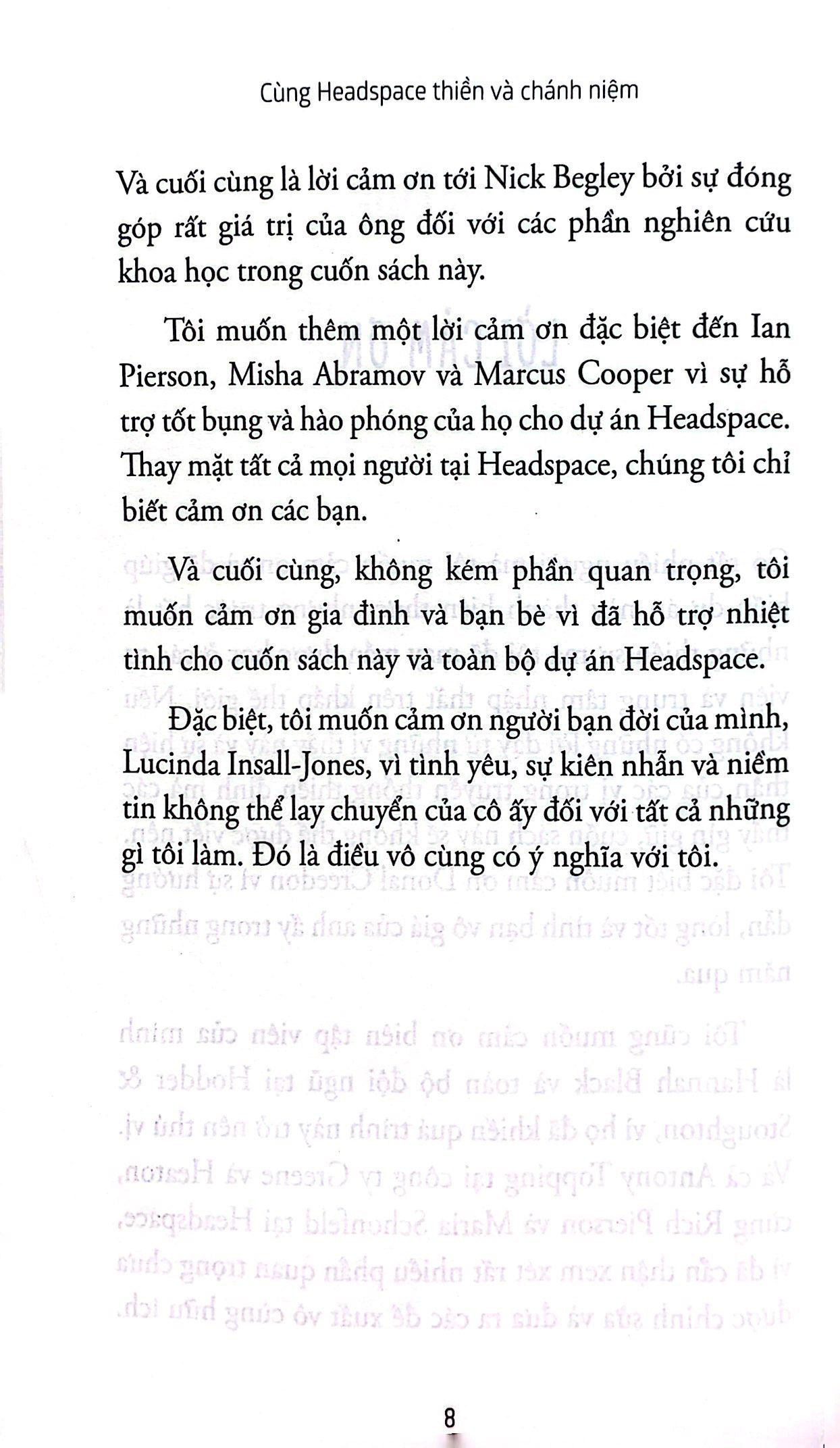 CÙNG HEADSPACE THIỀN VÀ CHÁNH NIỆM là cuốn sách cung cấp các kỹ thuật thiền đơn giản nhưng có tác động tích cực đến mọi lĩnh vực của sức khỏe thể chất và tinh thần: từ năng suất và tập trung đến giảm căng thẳng và lo lắng, hay cả cải thiện giấc ngủ, giảm cân, các mối quan hệ cá nhân,