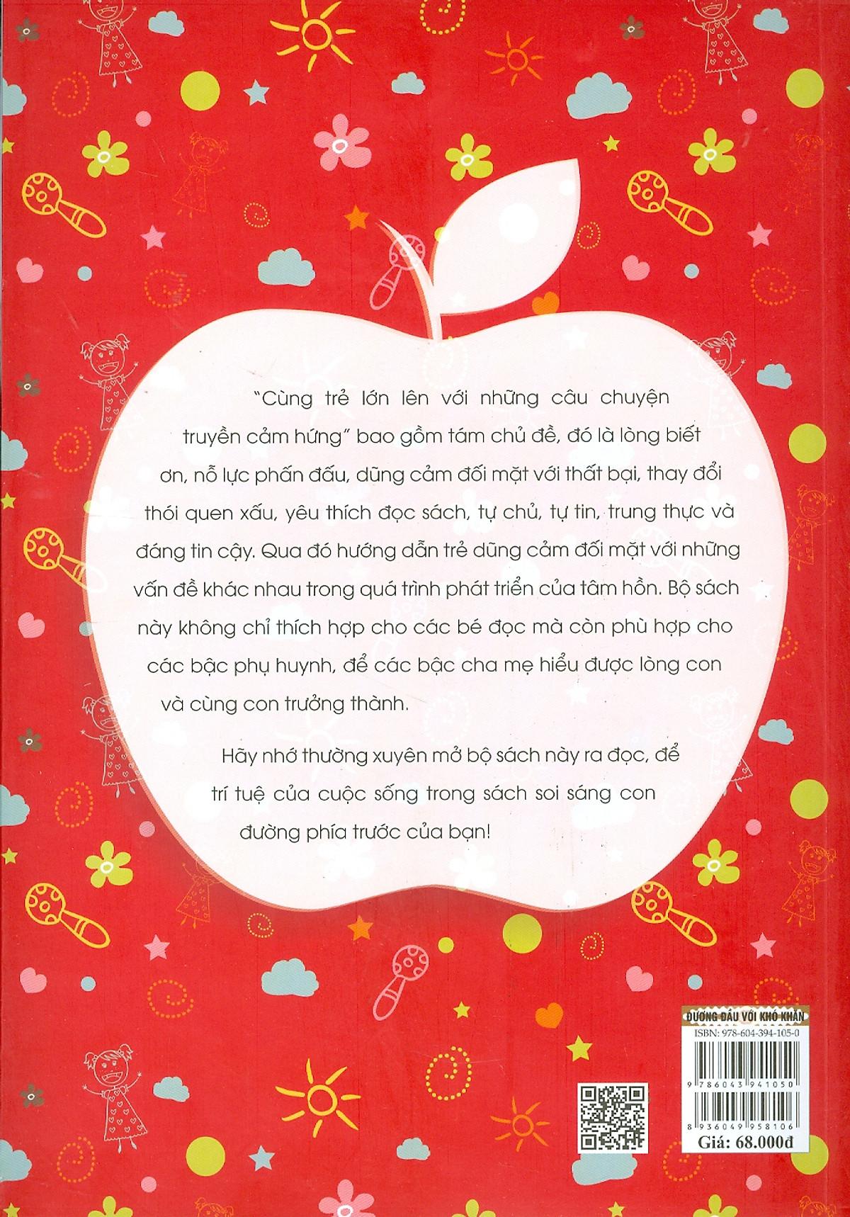 “Cùng trẻ lớn lên với những câu chuyện truyền cảm hứng” bao gồm tám chủ đề, đó là lòng biết ơn, nỗ lực phấn đấu, dũng cảm đối mặt với thất bại, thay đổi thói quen xấu, yêu thích đọc sách, tự chủ, tự tin, trung thực và đáng tin cậy. Qua đó hướng sẫn trẻ dũng cảm đối mặt với những vấn đề khác nhau trong quá trình phát triển của tâm hồn. Bộ sách này không chỉ thích hợp cho các bé đọc mà còn phù hợp cho các bậc phụ huynh, để các bậc cha mẹ hiểu được lòng con và cùng con trưởng thành. Hãy nhớ thường xuyên mở bộ sách này ra đọc, để trí tuệ của cuộc sống trong sách soi sáng con đường phía trước của bạn!