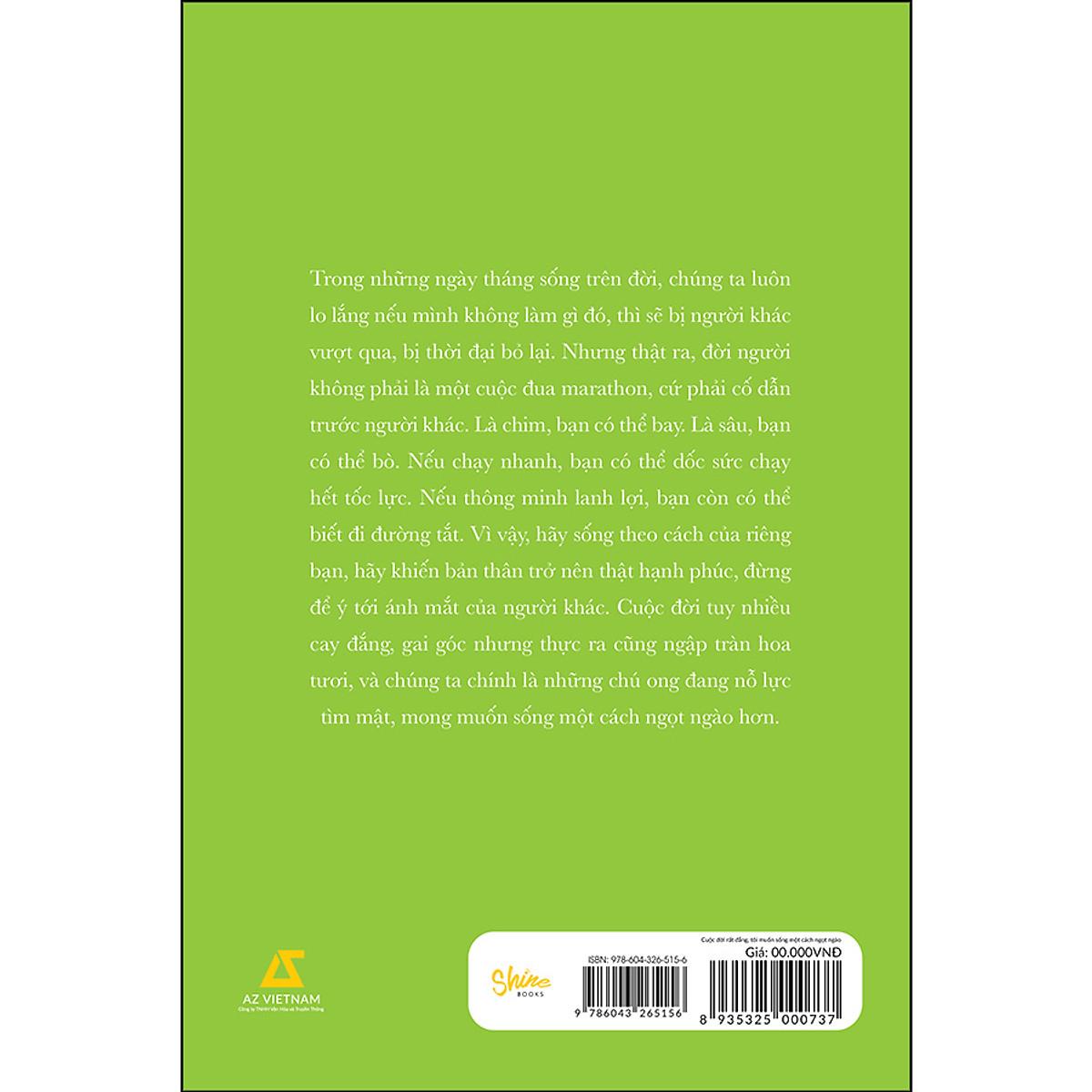 Trong những ngày tháng sống trên đời, chúng ta luôn lo lắng nếu mình không làm gì đó, thì sẽ bị người khác vượt qua, bị thời đại bỏ lại. Nhưng thật ra, đời người không phải là một cuộc đua marathon, cứ phải cố dẫn trước người khác. Là chim, bạn có thể bay. Là sâu, bạn có thể bò. Nếu chạy nhanh, bạn có thể dốc sức chạy hết tốc lực. Nếu thông minh lanh lợi, bạn còn có thể biết đi đường tắt. Vì vậy, hãy sống theo cách của riêng bạn, hãy khiến bản thân trở nên thật hạnh phúc, đừng để ý tới ánh mắt của người khác. Cuộc đời tuy nhiều cay đắng, gai góc nhưng thực ra cũng ngập tràn hoa tươi, và chúng ta chính là những chú ong đang nỗ lực tìm mật, mong muốn sống một cách ngọt ngào hơn.