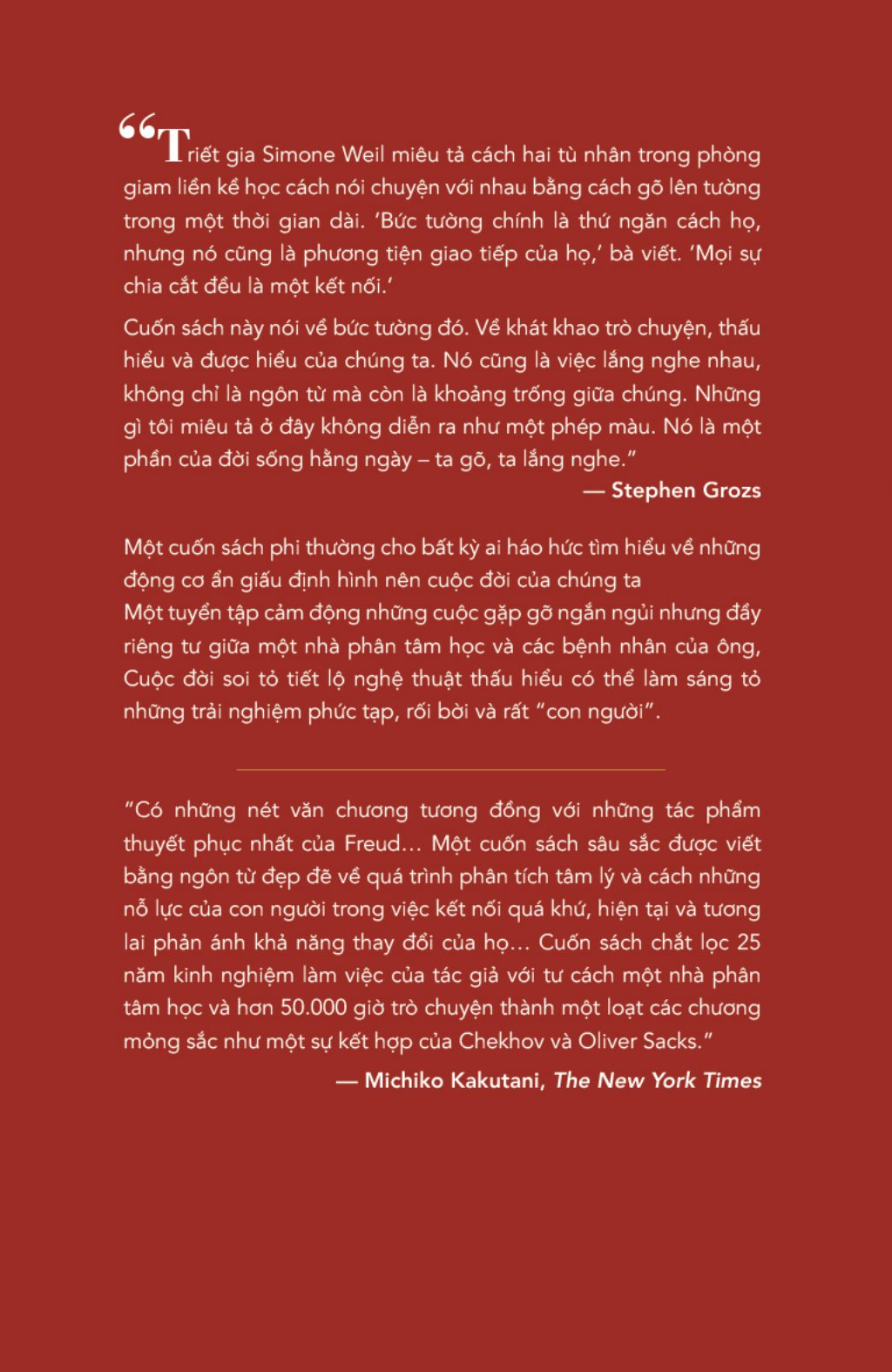 Một cuốn sách phi thường cho bất kỳ ai háo hức tìm hiểu về những động lực ẩn giấu định hình nên cuộc sống của chúng ta Chúng ta đều là những người kể chuyện – chúng ta tạo nên những câu chuyện khiến cuộc sống của chúng ta ý nghĩa. Một tuyển tập cảm động những cuộc gặp gỡ ngắn ngủi nhưng đầy riêng tư giữa một nhà phân tâm học và các bệnh nhân của ông, Cuộc Đời Soi Tỏ tiết lộ nghệ thuật thấu hiểu có thể soi tỏ những trải nghiệm phức tạp, rối bời và rất “con người”. Và trên hết, những câu chuyện này chỉ cho chúng ta không chỉ cách để yêu bản thân mà còn cả cách để tìm thấy bản thân.