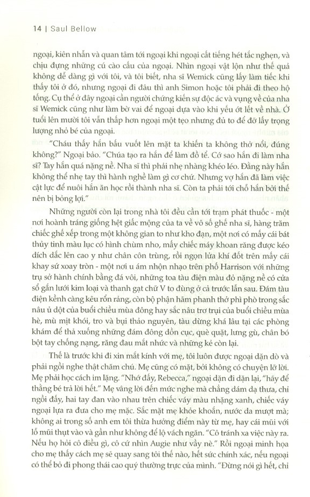 “Mọi thứ thuộc về Chicago dường như đều tụ họp lại trong cuốn sách này, và xét cho cùng là toàn bộ nước Mỹ, cũng như phần lớn lịch sử nhân loạ Người ta phải lòng cuốn sách trên khía cạnh nghệ thuật - vì sự hài hước, sự hào sảng, sự đặc quánh, vì chất liệu ngôn ngữ học của nó - và, đương nhiên, vì hy vọng tràn đầy trong những trang sách.” -- The New Yorker
