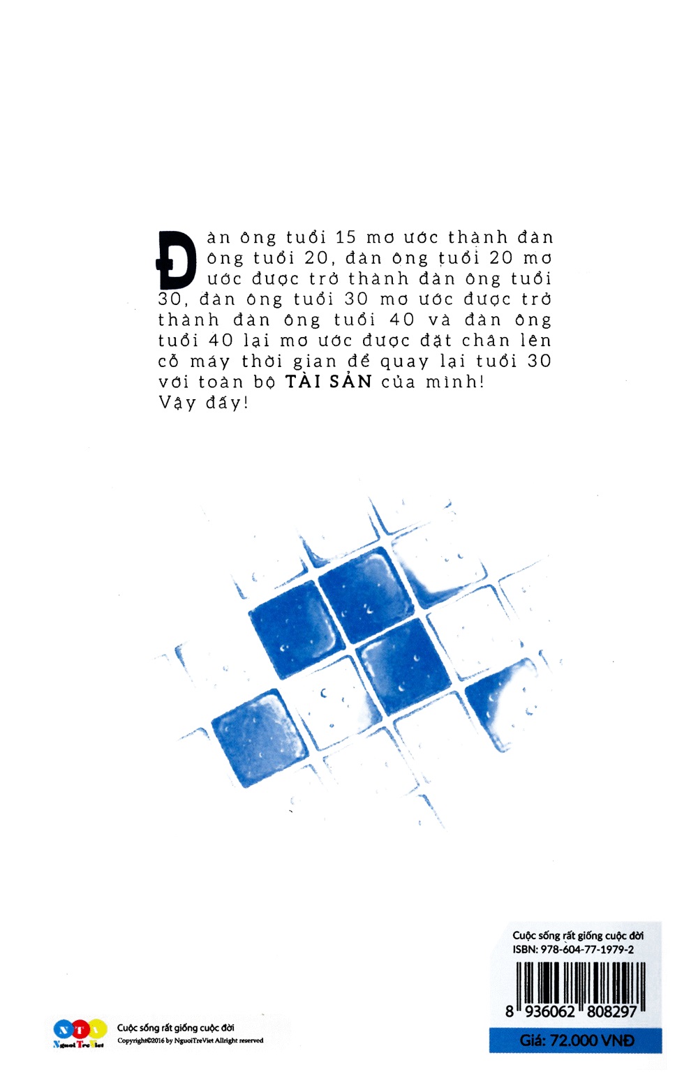 “ Đàn ông tuổi 15 mơ ước thành đàn ông tuổi 20, đàn ông tuổi 20 mơ ước được trở thành đàn ông tuổi 30, đàn ông tuổi 30 mơ ước được trở thành đàn ông tuổi 40 và đàn ông tuổi 40 lại mơ ước được đặt chân lên cỗ máy thời gian để quay lại tuổi 30 với toàn bộ tài sản của mình!”