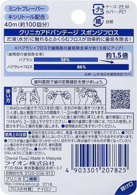 Chỉ nha khoa Clinica Advantage 40m, sử dụng chỉ nha khoa giúp ngăn ngừa các bệnh về viêm nướu và tích tụ mảng bám - nội địa Nhật Bản Chất liệu: Được chế tác từ bọt