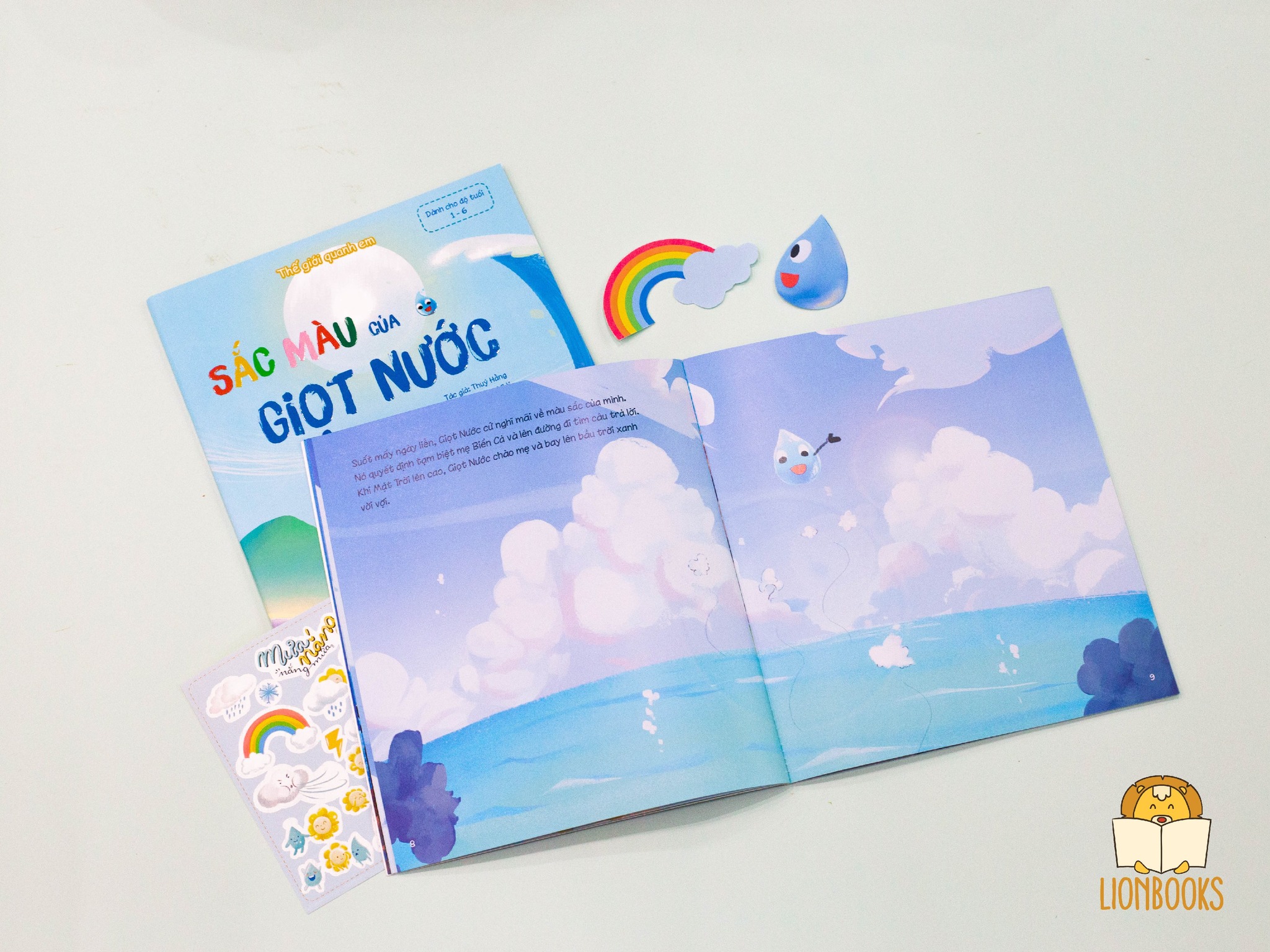 Đặc biệt, với mỗi cuốn sách "SẮC MÀU GIỌT NƯỚC" đến tay các bạn nhỏ, Lionbooks tặng kèm một chiếc STICKER siêu xinh xắn được thiết kế độc quyền.
