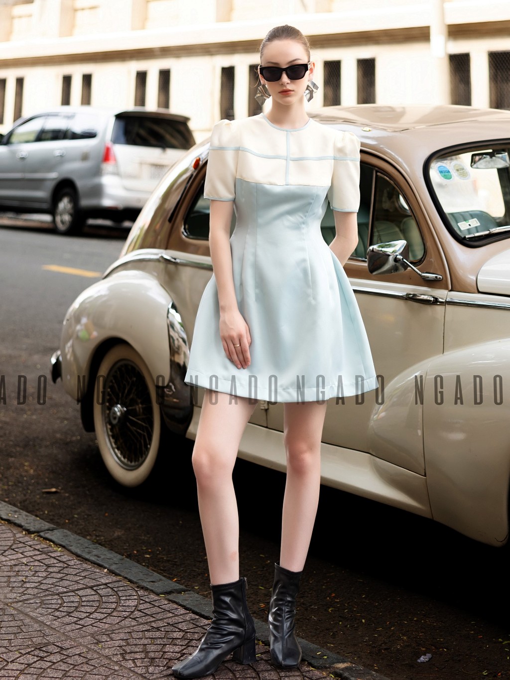 ✨Đầm xanh mint phối trắng NGADO , đầm nữ , Đầm ngắn trẻ trung , Đầm thiết kế