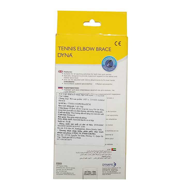 - Phòng ngừa, bảo vệ khuỷu tay khỏi bị chấn thương khi tập luyện Sản xuất và nhập khẩu: -Sản phẩm đạt tiêu chuẩn CHÂU ÂU do hãng DYNAMIC của Ấn Độ sản xuất xuất khẩu trên 35 nước trên thế giới bao gồm Anh, Mỹ, EU, châu Á... Size sản phẩm: một size duy nhất phù hợp hết mọi độ to nhỏ của bắp tay Hướng dẫn sử dụng: