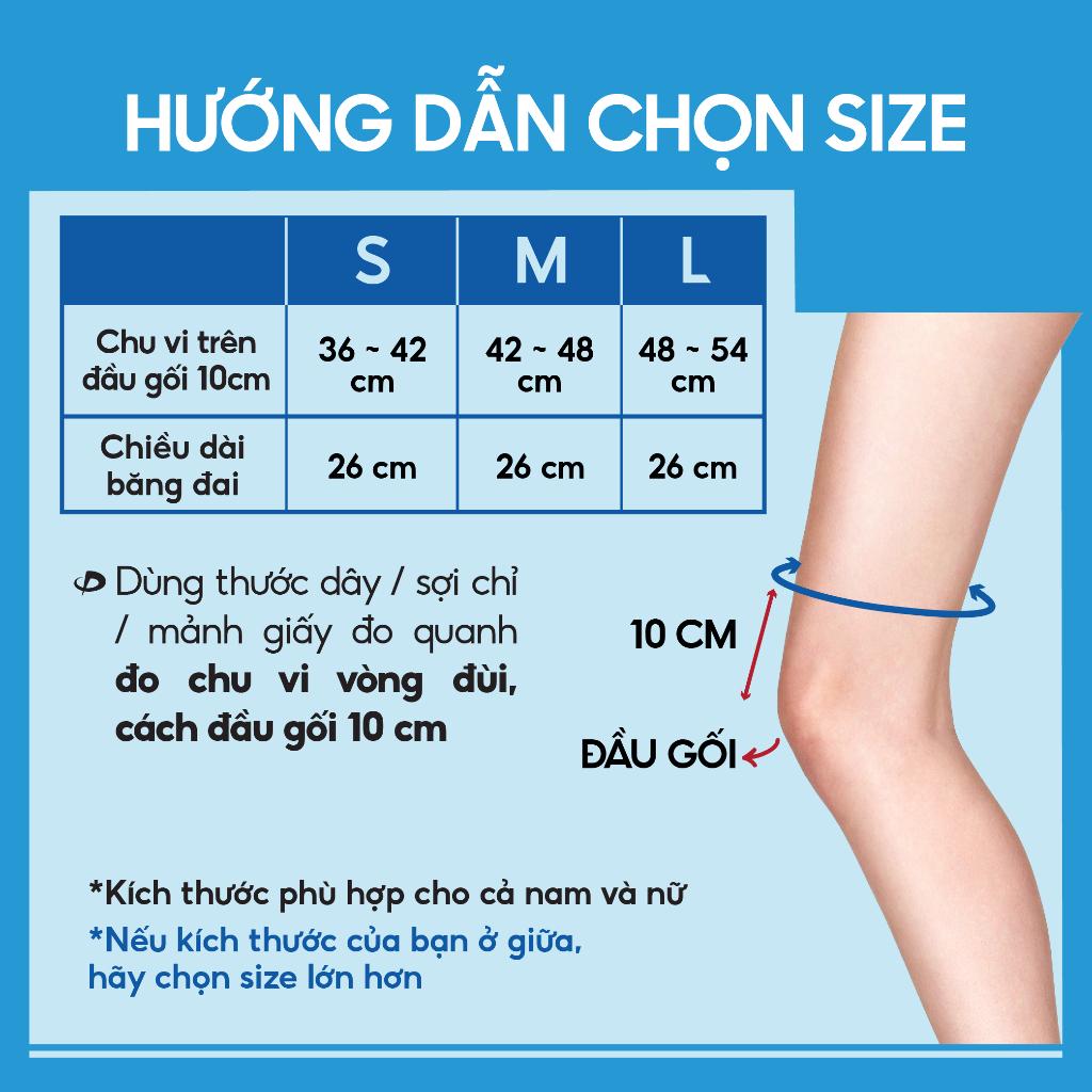 - Hỗ trợ phục hồi sau viêm khớp, viêm gân, thấp khớp và các tình trạng và chấn thương khác liên quan đến đầu gối. Chất liệu: Thân đai: 93% Nylon, 8% Polyurethane. Lớp trong: 80% Nylon, 21% Polyester. Công nghệ: AQUA-TITaniUM và AQUA-PALLADIUM Màu sắc: đen Size: S, M, L Mã phân loại sản phẩm: AP164003 : S (36-42cm) AP164004 : M (36-48cm) AP164005 : L (48-54cm) *Đo theo số đo vòng đùi phía trên khớp gối 5cm Công dụng: