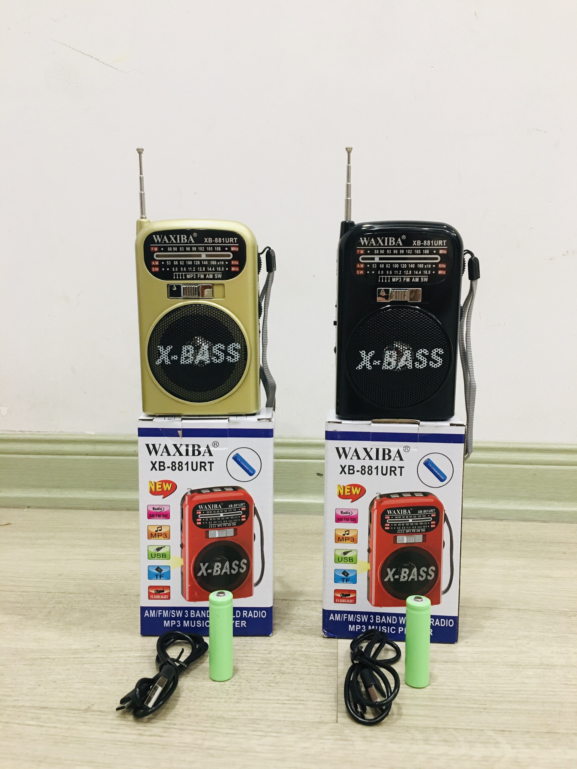 Đài Radio AM/FM/SW nghe nhạc WAXIBA 881URT Loa X-bass Nghe MP3 trên USB/thẻ nhớ,có đèn pin siêu sáng
