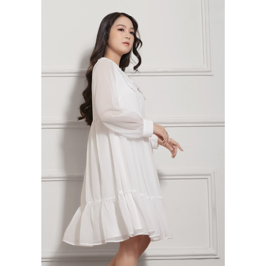 ✨Đầm Babydoll Lụa Crep Nhún Bèo Tay Dài Phồng Nhẹ Maxivic, La Mộc - LM012207
